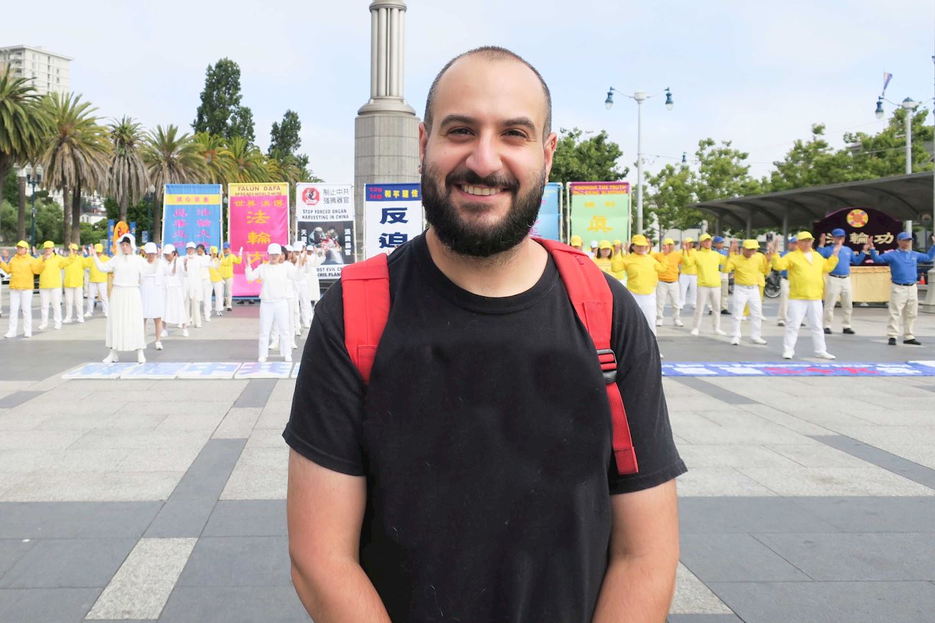 卡维·瓦乔伊(Kaveh Varjoy)在旧金山从事高科技行业,当他经过活动现场时,被“制止中共强摘器官”的标语所震惊。瓦乔伊表示,“我被吓到了,以为看错,活摘器官好象是电影中的恐怖情节,然而就发生在现实中,我非常地震惊,太邪恶了!中共参与其中,我一点也不惊讶。如果更多人能关注,就会有更多的人了解中共邪恶的本质,非常感谢你们告诉我这些事情。”