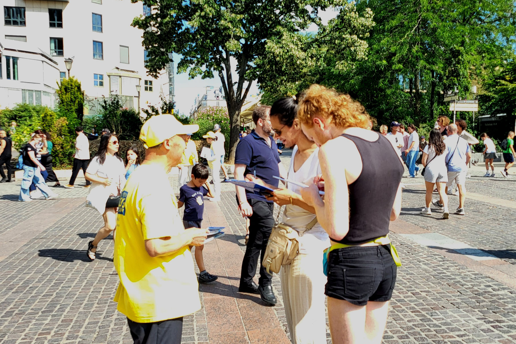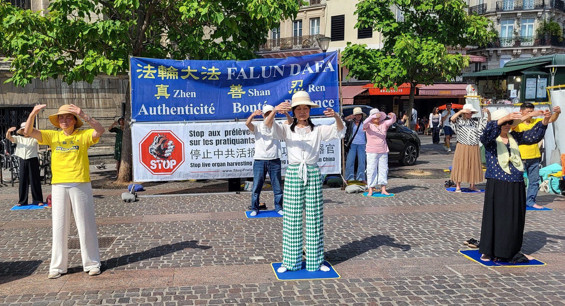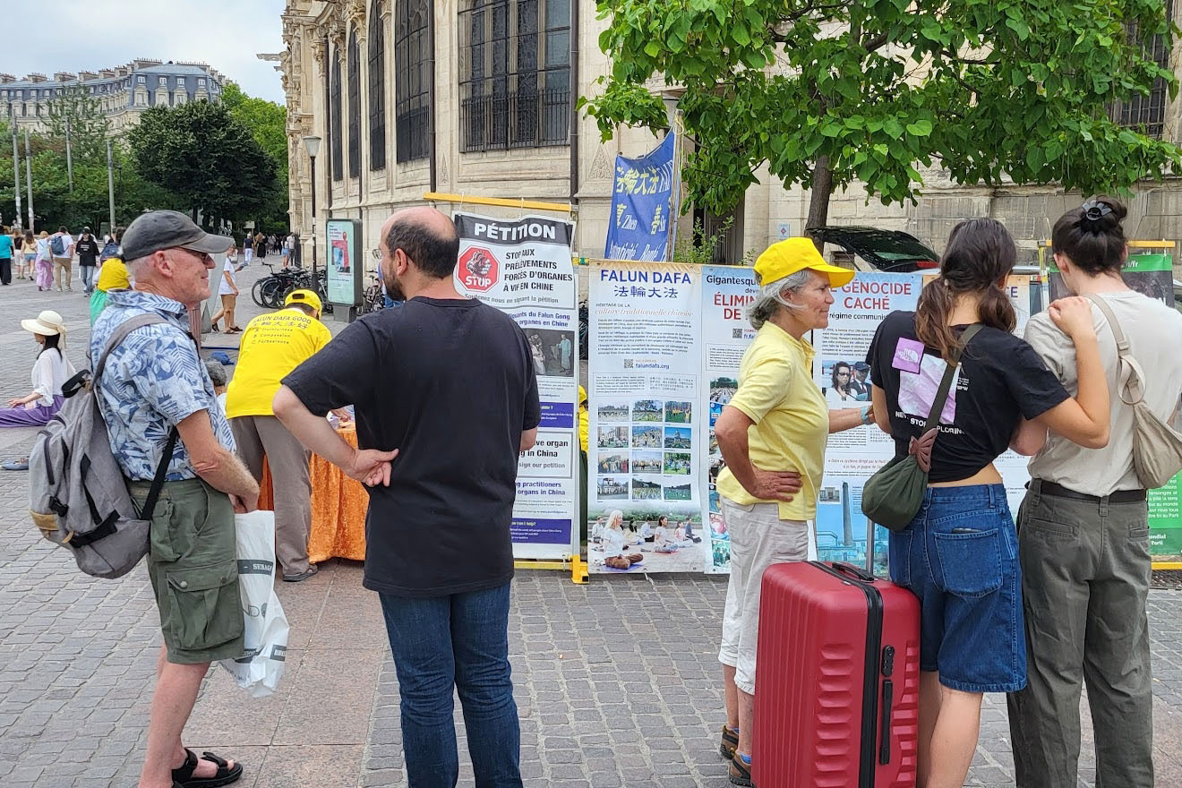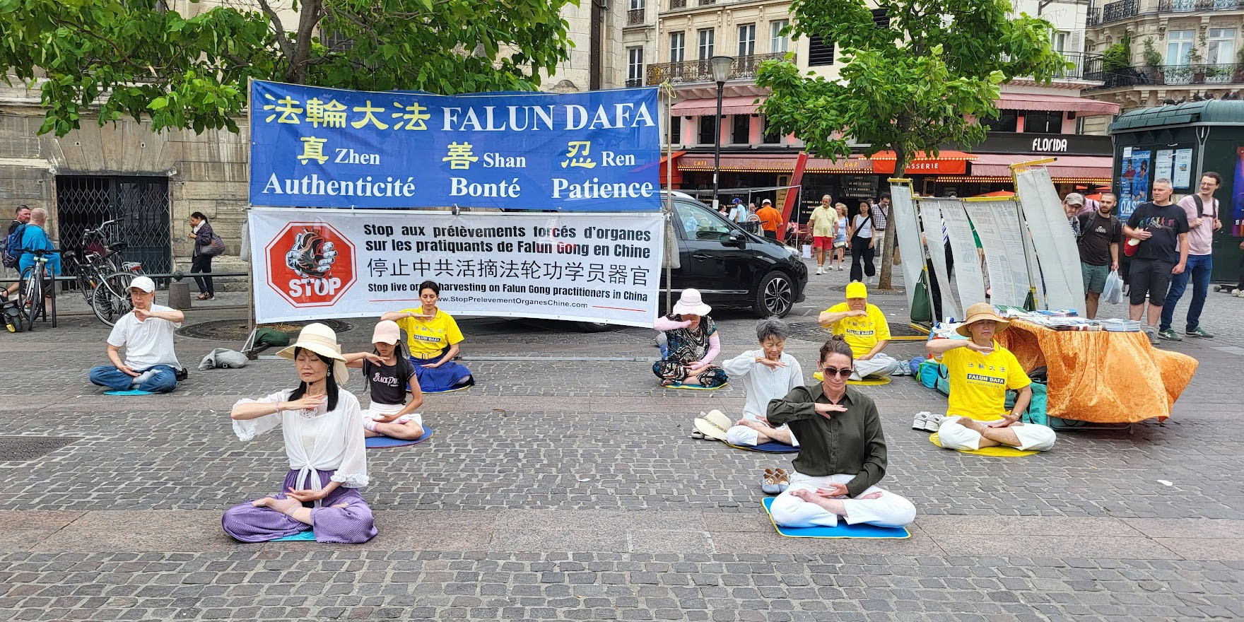 ![]() 图1~3:二零二五年七月五日和十二日两个周六下午,法轮功学员在巴黎市中心的夏特莱(Châtelet)街区进行了讲真相、炼功和征集签名反迫害的活动。 |