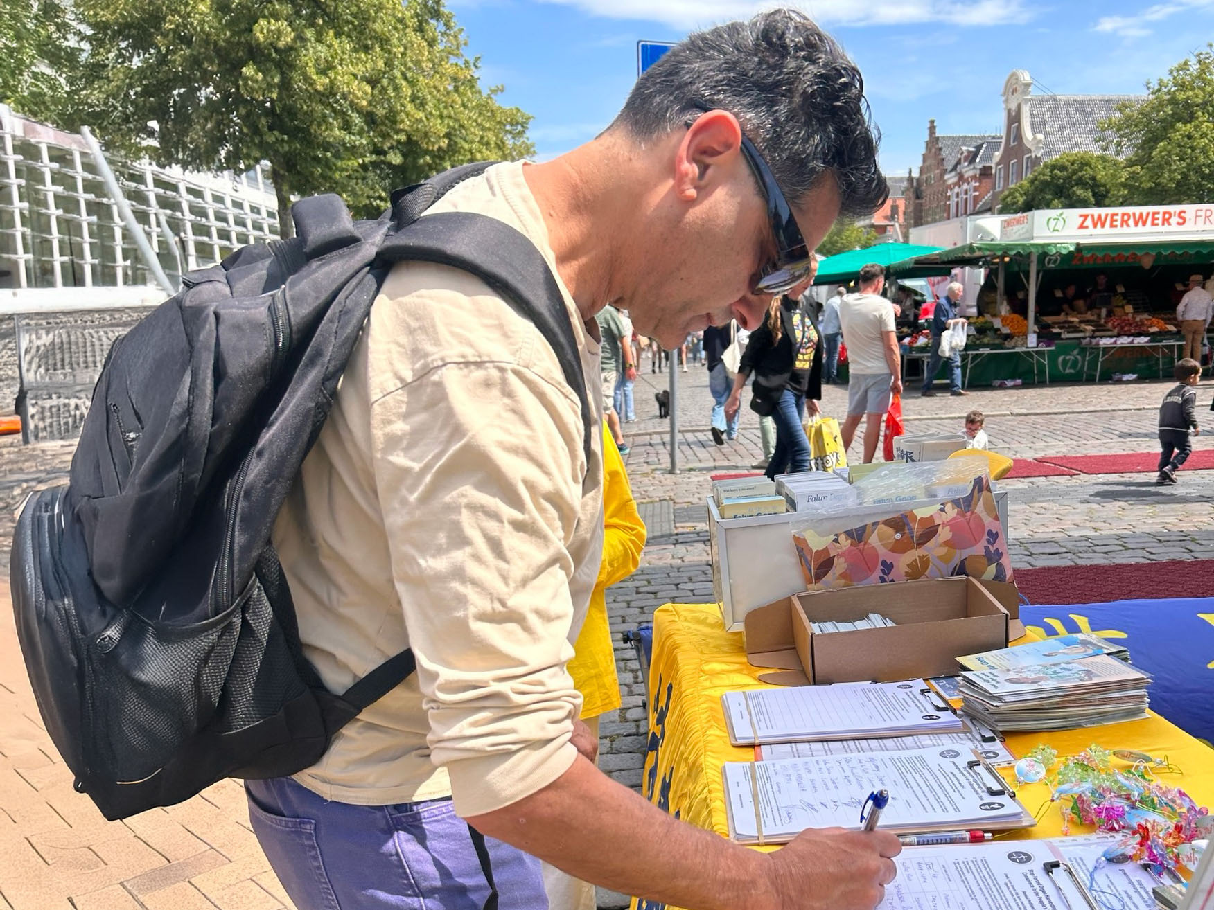 ![]() 图1:二零二五年七月十二日荷兰法轮功学员在格罗宁根市街头布置展板,展示法轮功功法,发放传单,向路人介绍法轮功真相。 |