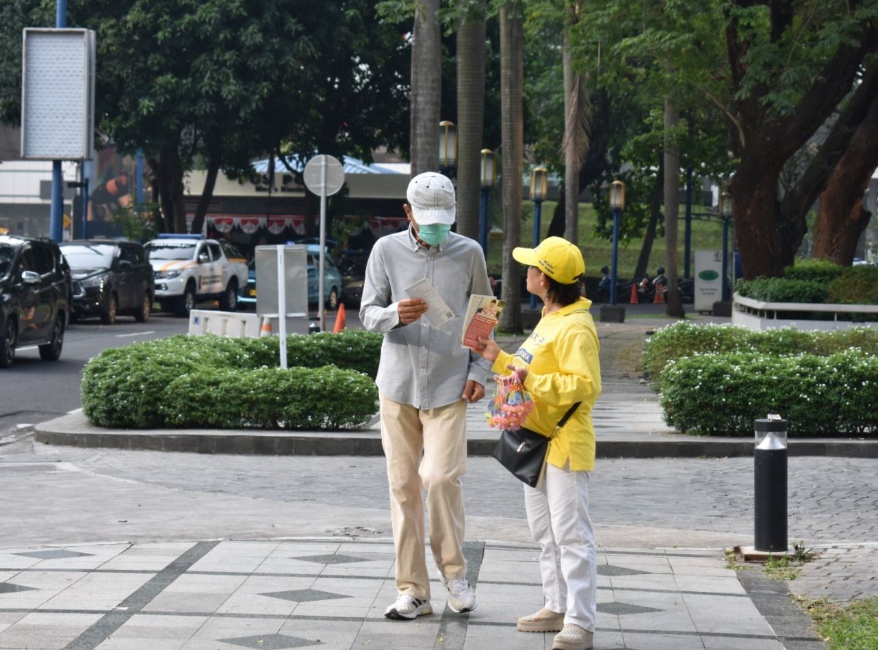 印尼法轮大法学会发言人萨斯特拉尼(Sastrani)女士在集会中说:“中共不仅在中国迫害法轮功超过二十六年,还滥用其外交渠道和国家资金在全球范围内收买影响力。它利用海外媒体和社交媒体传播虚假信息,对法轮功及其创始人进行诽谤,目的是放大虚假信息并压制真相。”