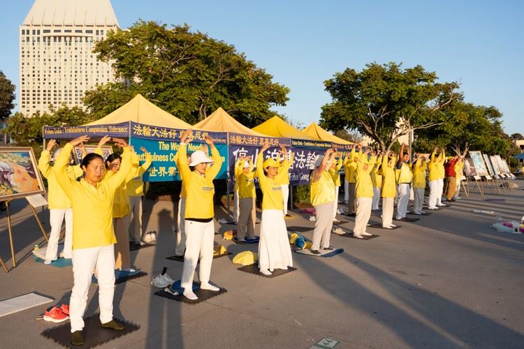 ![]() 图1:法轮功学员在真善忍画展结束后做功法演示。 |
