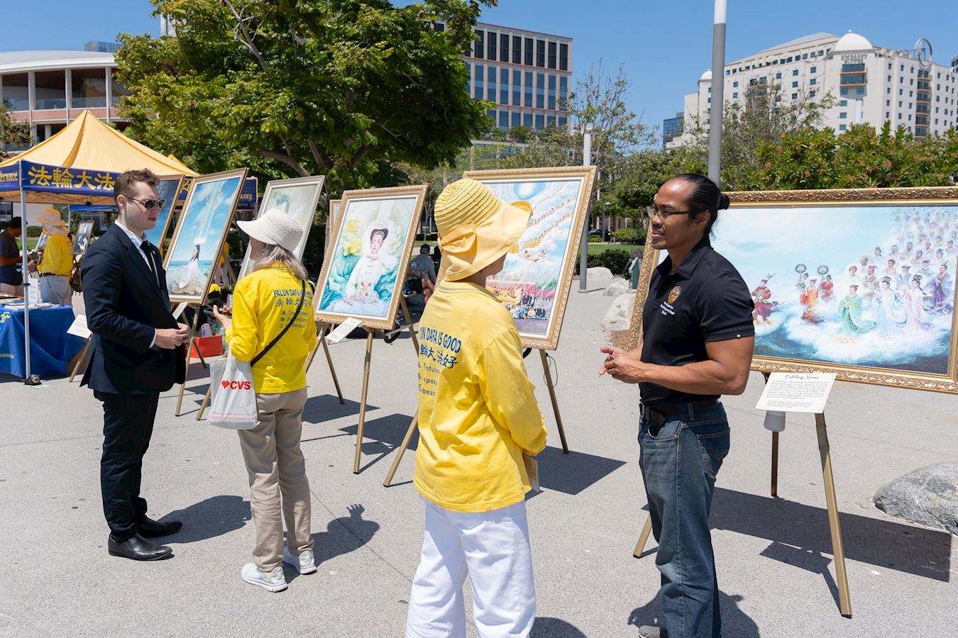 安德森办公室的社区代表纳撒尼尔·哈里斯(Nathaniel Harris)到现场颁发褒奖。他观看了画展,并听法轮功学员讲述他们遭受迫害的亲身经历。他说:“这个活动令人震撼,让我感到共鸣。”