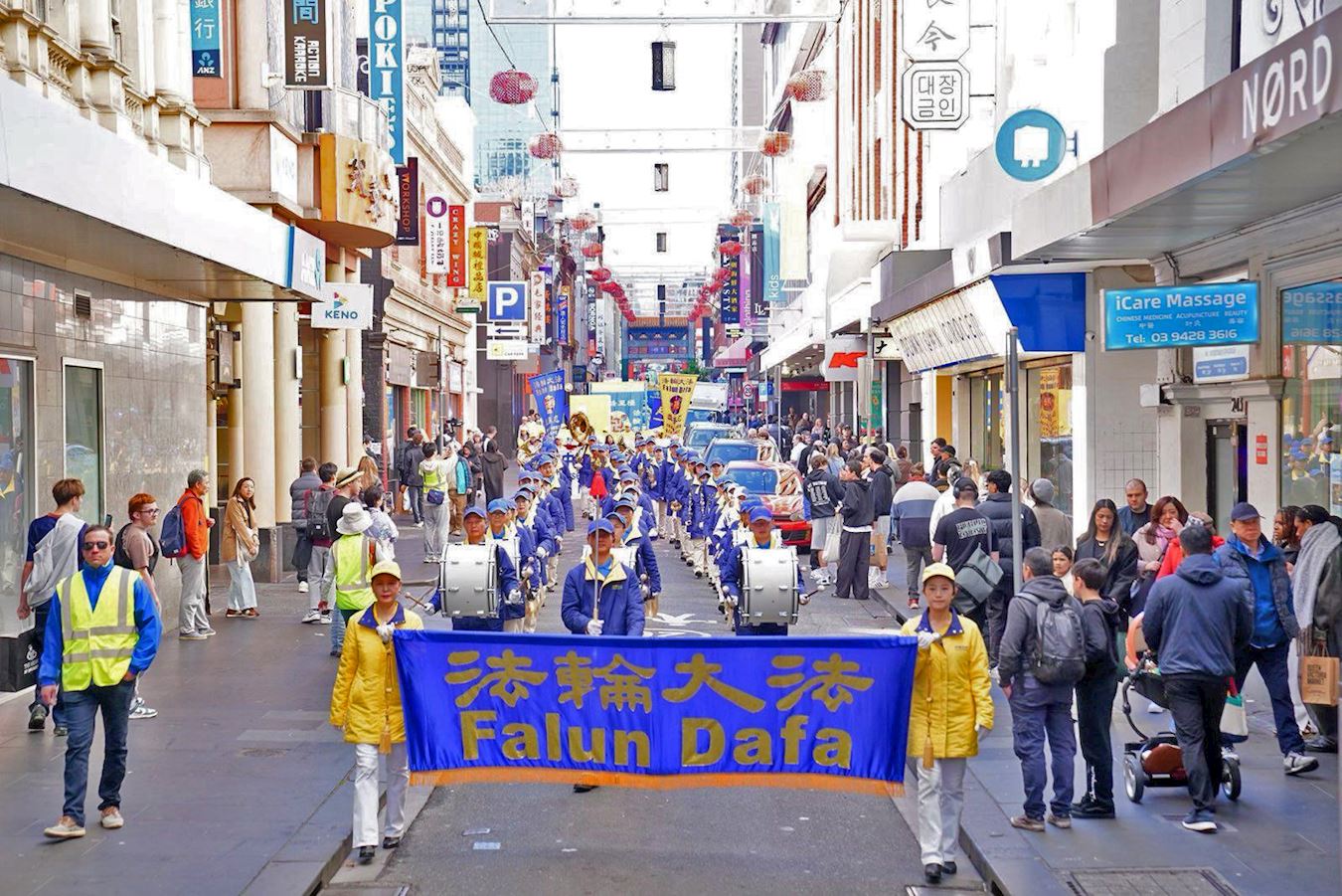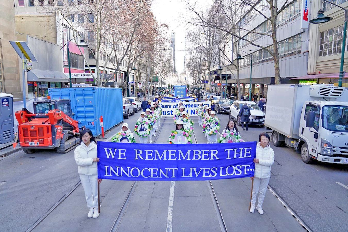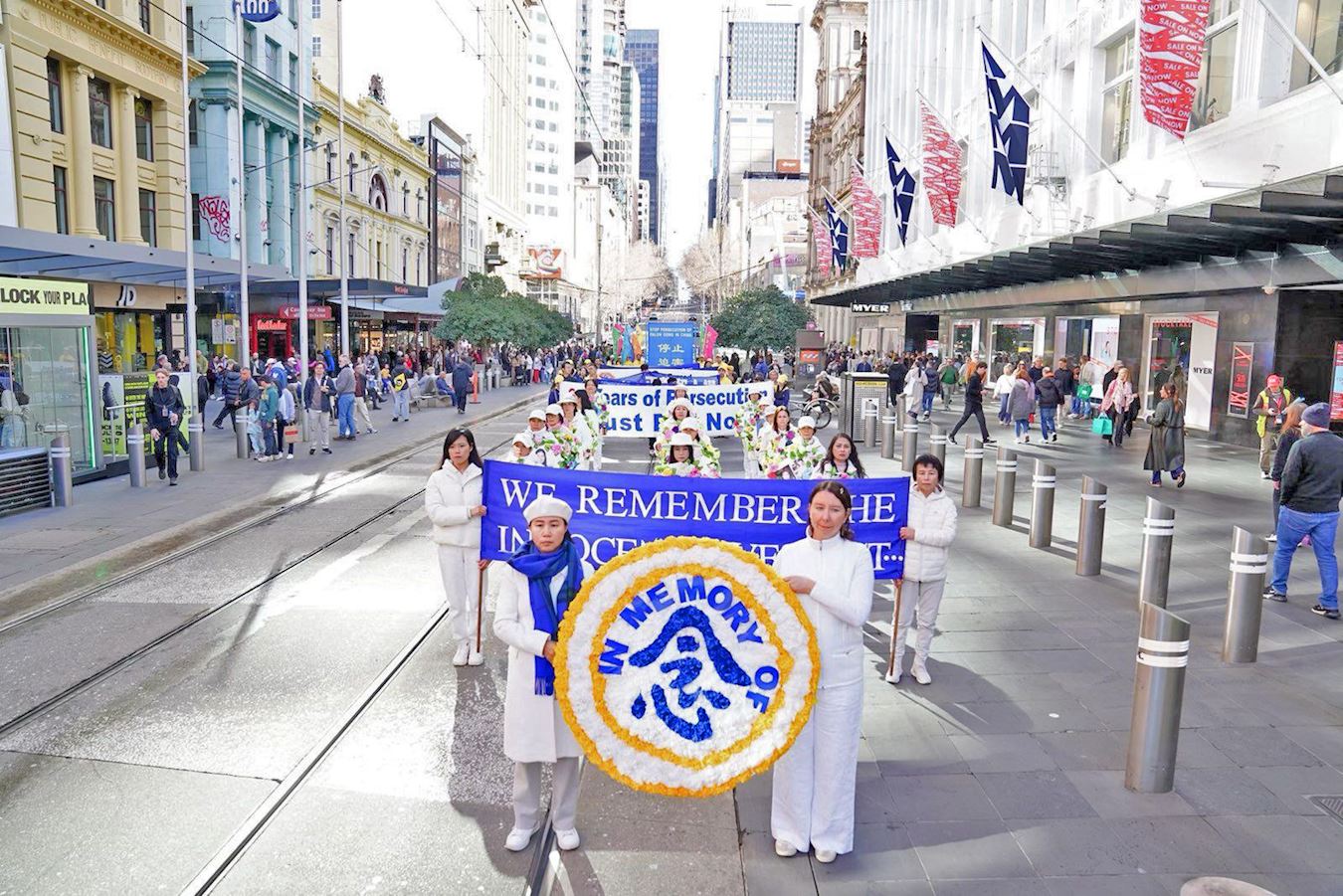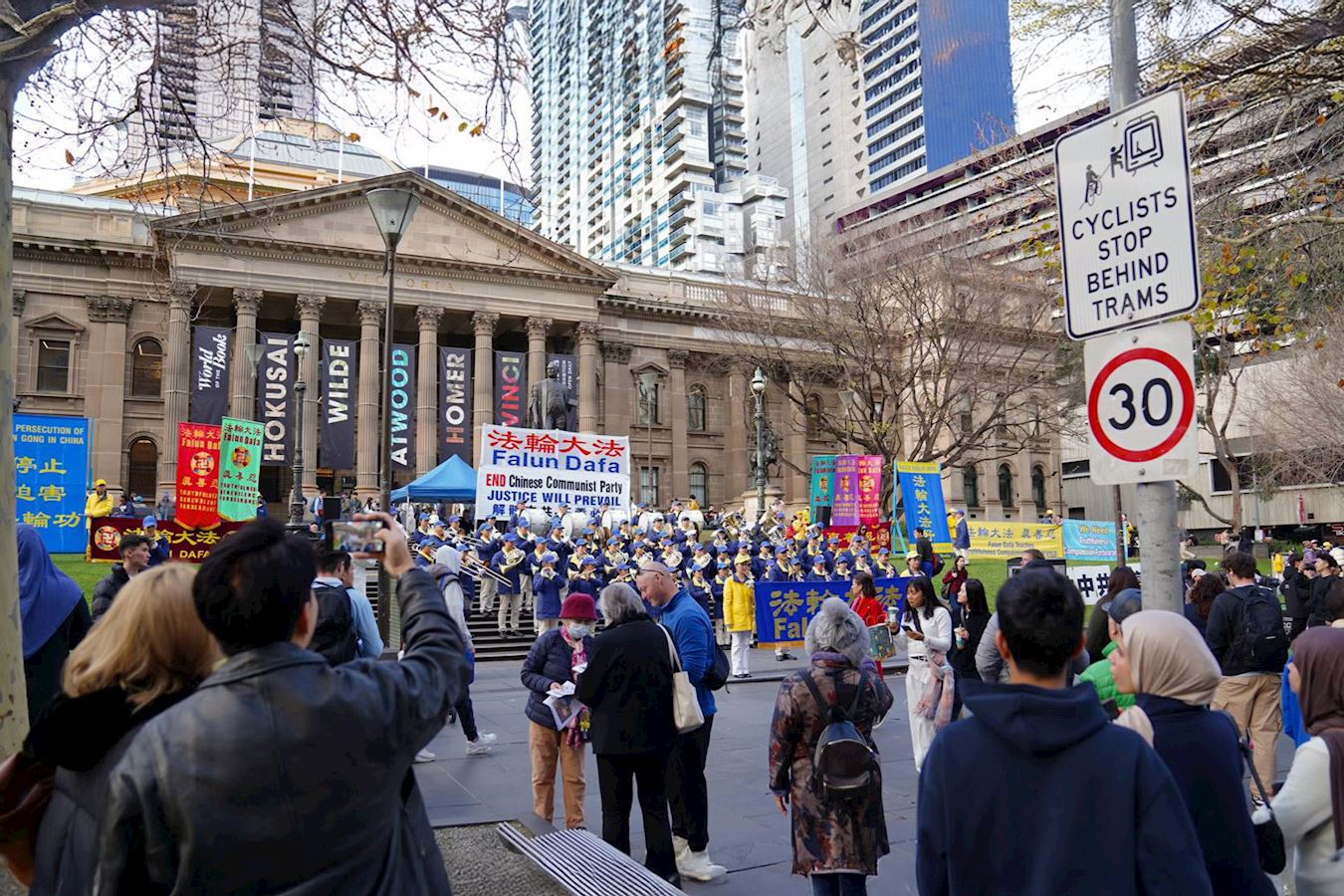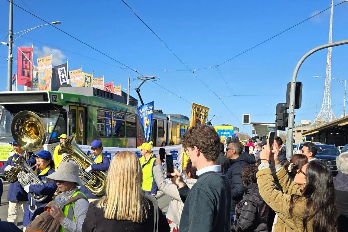 ![]() 图1~9:二零二五年七月十二日,澳洲墨尔本部分法轮功学员在市中心举行了反迫害二十六年大游行,吸引市民和游客驻足。 |