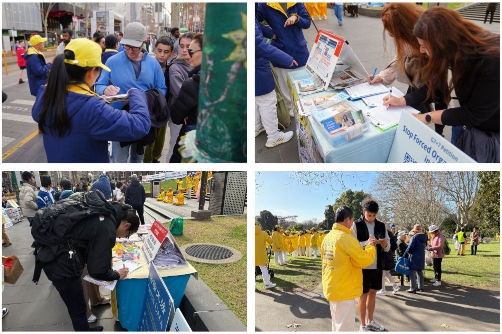 ![]() 图10~12:二零二五年七月十二日,澳洲墨尔本的部分法轮功学员在市中心州立图书馆前举行反迫害二十六年集会。不少民众了解真相后签名,支持法轮功反迫害。 |