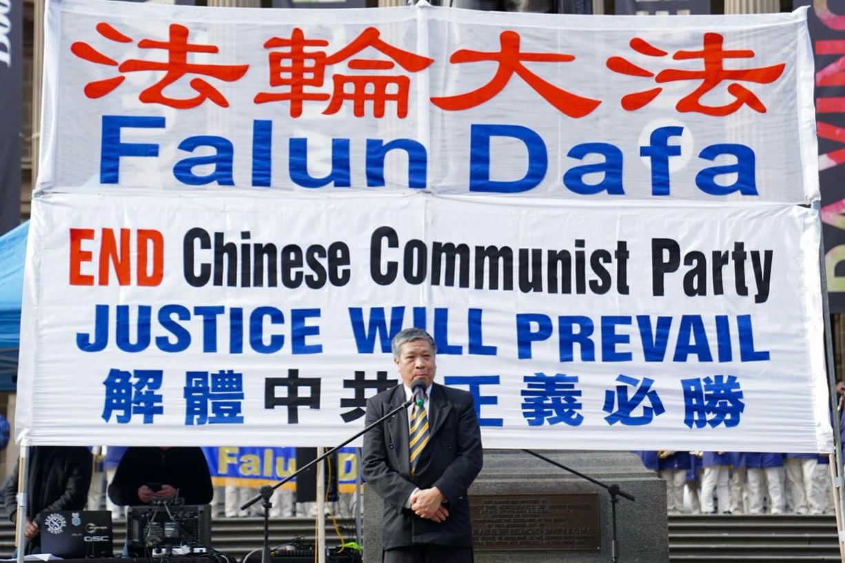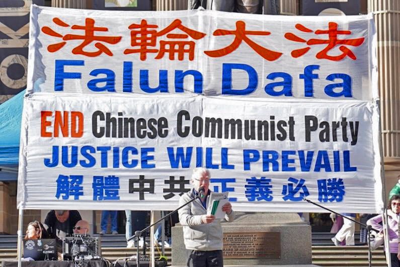 澳洲民主工党(Democratic Labor Party)维州前副主席弗拉德(Gerard Flood)在集会上呼吁澳洲采取强硬立场,制止中共反人类罪行。他说,中共每年大规模屠杀无辜民众,“进行令人发指的活摘器官,我呼吁澳洲所有民间团体发出声音,推动中共垮台,结束其暴政,唤醒我们的意志力,引领世界走向和平与自由。”