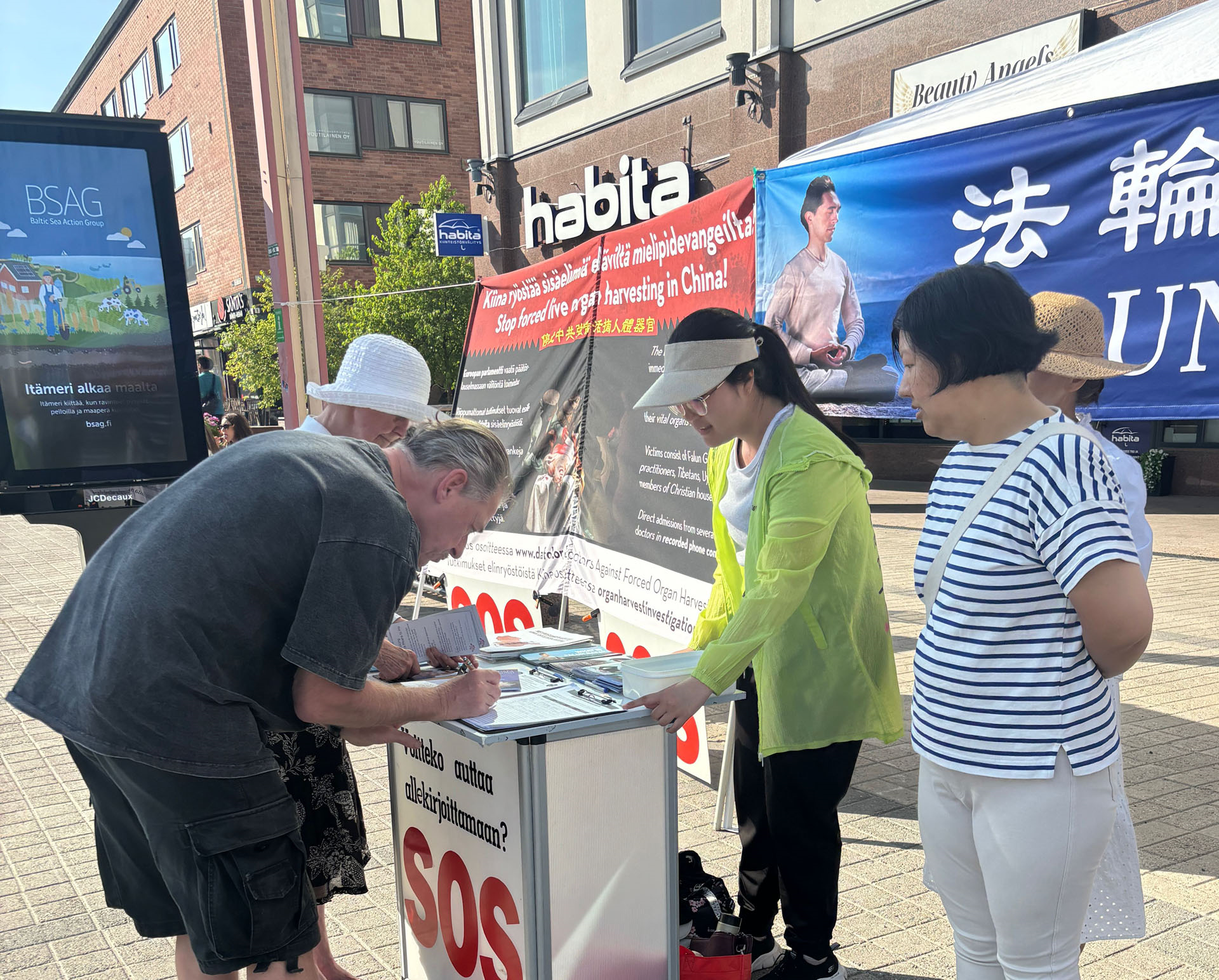 许多当地芬兰人以及来自世界各地的游客纷纷驻足,认真阅读展板内容,聆听法轮功学员的讲解。很多游客在签名后表示:“我听说过法轮功,但不了解详情,今天我才真正明白发生了什么。这是对人权的严重侵犯,我们不能沉默。”