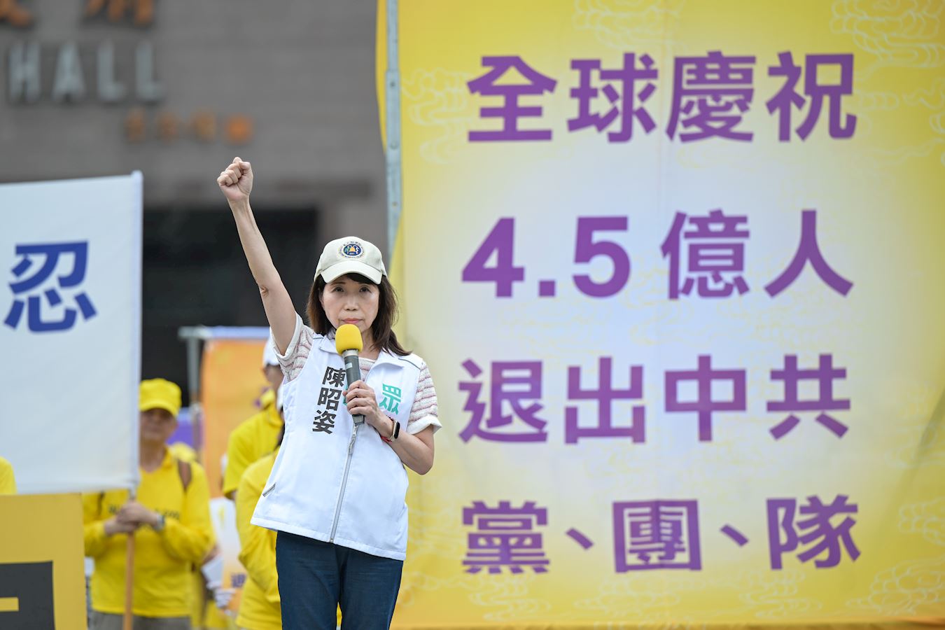 立法委员陈昭姿在记者会中表示,尽管心情沉重,但仍怀着坚定的信念与现场学员一同反迫害。“数以万计、或许更多的修炼者,仅仅因为坚持信仰真、善、忍,竟遭遇难以想象的迫害。到现在,还有许多人在中国与其他地区,正面临非法拘禁、劳改、酷刑,甚至活摘器官等不人道对待。”