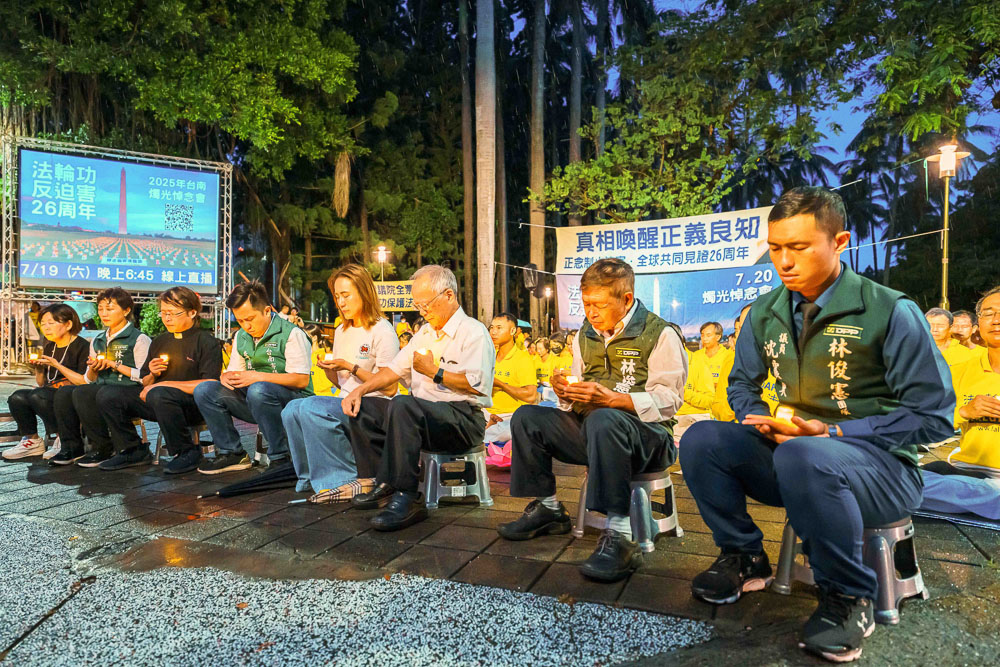 台湾立法委员(国会议员)、多位市议员和前市府官员、牧师、律师等莅临会场共同声援法轮功,谴责中共在境内和跨国镇压无辜信仰团体,感谢法轮功学员传递真相守护人权,唤醒正义良知,并呼吁共同制止中共令人发指的罪恶。