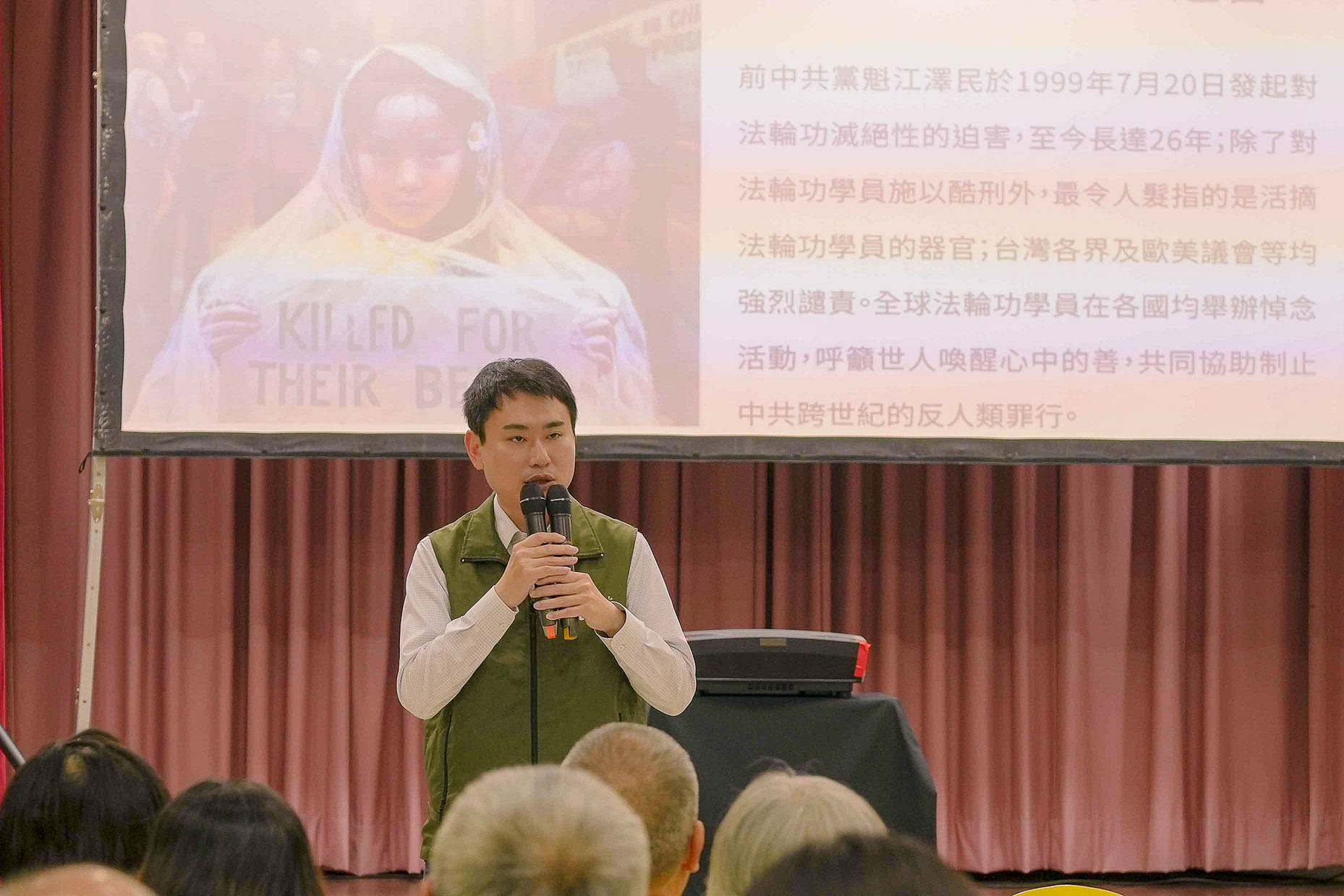 他表示,“你们坚持不断的向全世界揭露中共迫害真相,传达渴望信仰自由的声音。自由是天赋人权,在台湾这个自由民主国家,也是得来不易,我们也要珍惜拥有的自由。”