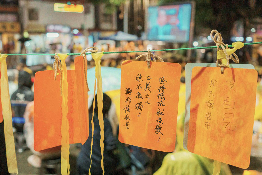 ![]() 图13:台南会场悬挂的反迫害声援卡上年轻人留下了正义之声。 |