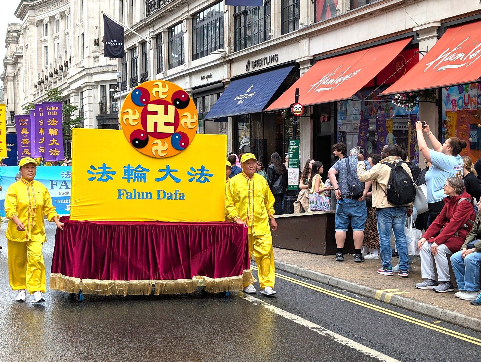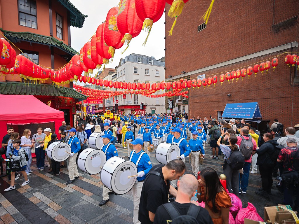 当日活动的重头戏,是一场再次穿越伦敦市中心的盛大游行。中午十二点,游行队伍从中国大使馆门前出发,途经伦敦最繁华的牛津街、皮卡迪利广场与唐人街,最后抵达圣马丁广场。沿途吸引了大量市民与游客驻足关注、拍摄。