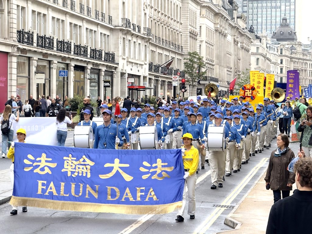 ![]() 图1~10:法轮功学员游行队伍经过伦敦市中心 |