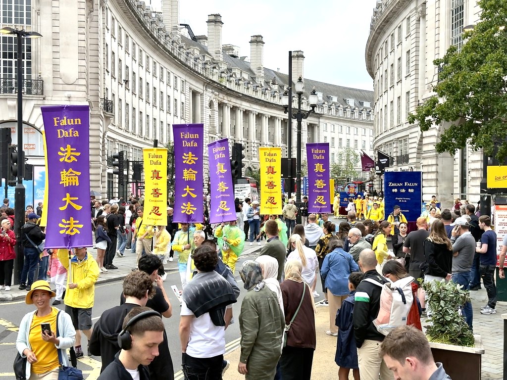游行结束后,学员们继续在圣马丁广场举行弘法讲真相活动,向公众介绍法轮功的美好,揭示中共迫害真相,并呼吁更多人伸出援手,共同制止这场人权灾难。