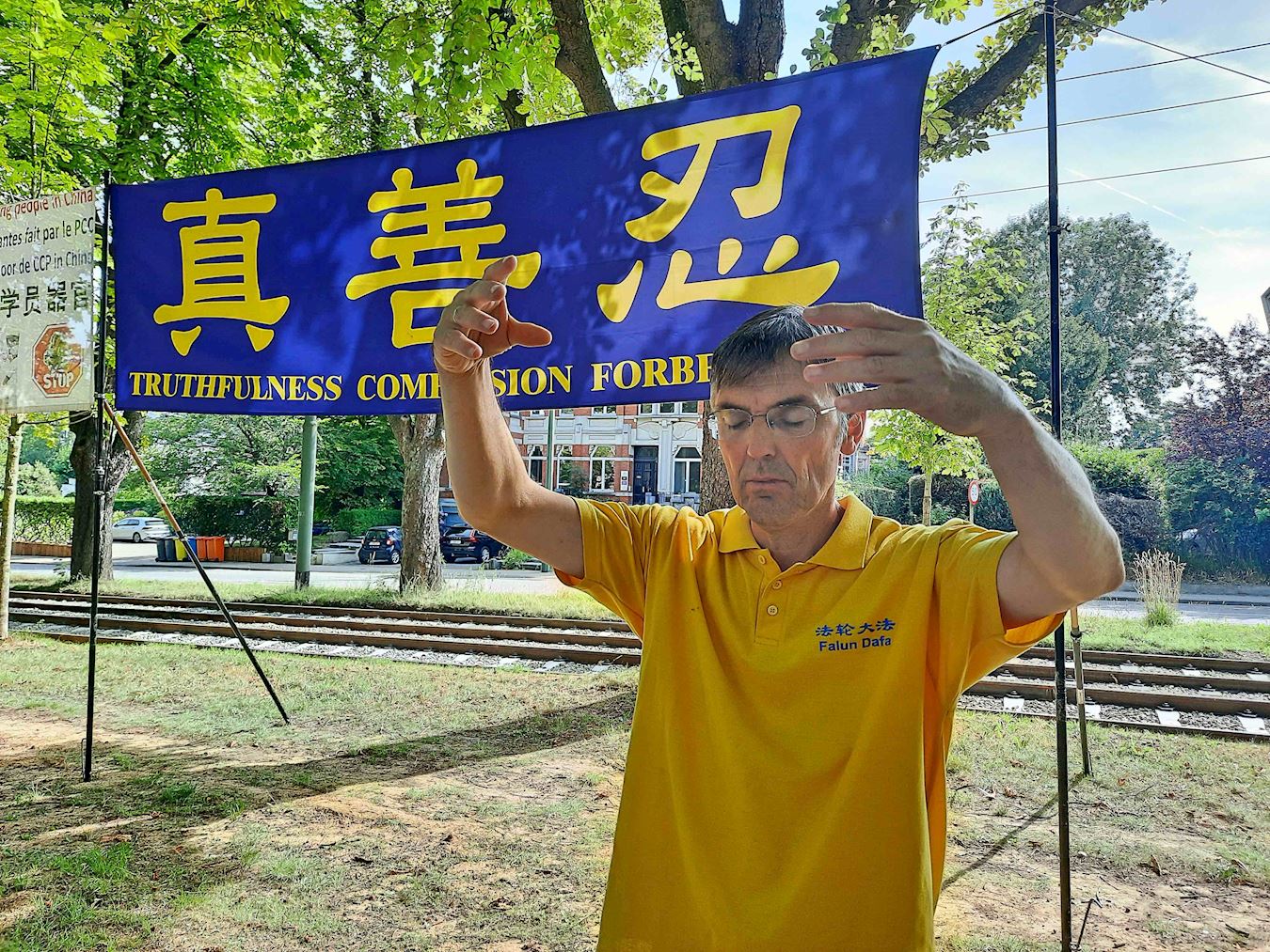 陈先生听到台湾有八百多个炼功点,都是可以自由学炼的,而且不收礼不收费,透过游行,他还了解到法轮功学员坚持二十六年的和平诉求。他认为“好的信仰,必须受到保护”,他也觉得法轮功真善忍的精神,对社会国家是有益的,并且支持今天的反迫害诉求。