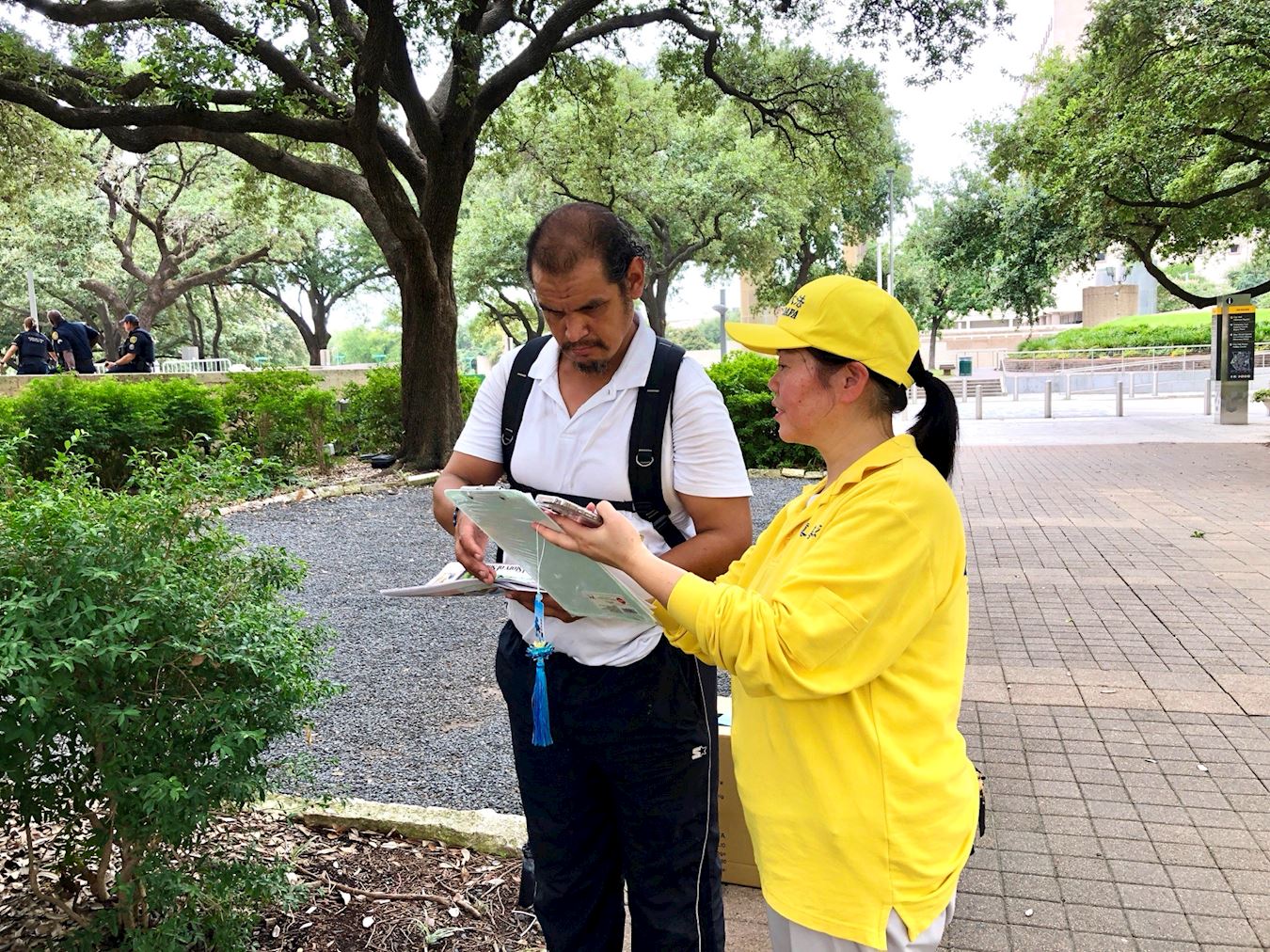 梅钦佩法轮功学员能坚持二十多年反迫害,他说:”我觉得这能持续那么久真的很令人敬佩。美国是一个支持言论自由的国家,我不觉得任何人或团体应该因信仰而被迫害。”