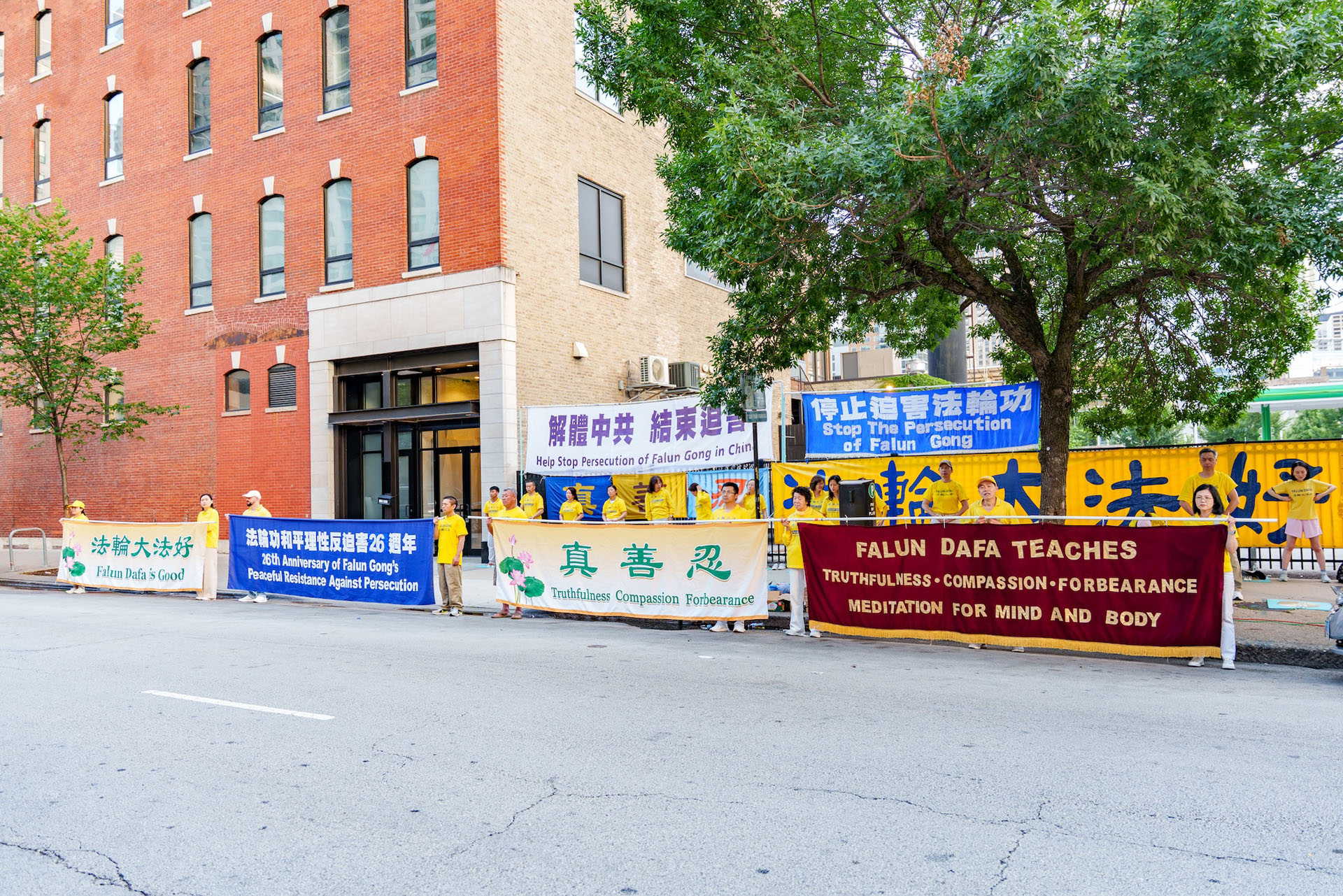 【明慧网二零二五年七月二十一日】二零二五年七月二十日,纽约及周边地区的数千位法轮功学员在曼哈顿华埠举行了“7‧20”大游行,呼吁结束中共长达二十六年对法轮功的迫害,并声援4.49亿中国人退出中共党团队组织。纽约民众纷纷驻足观看,对法轮功学员坚持反迫害的坚守表示感佩。