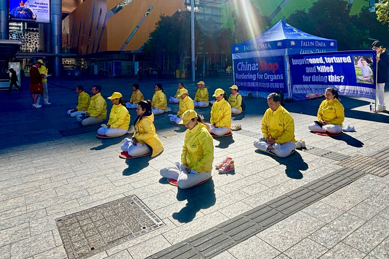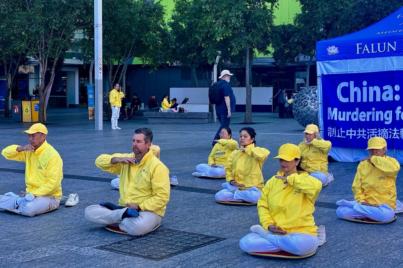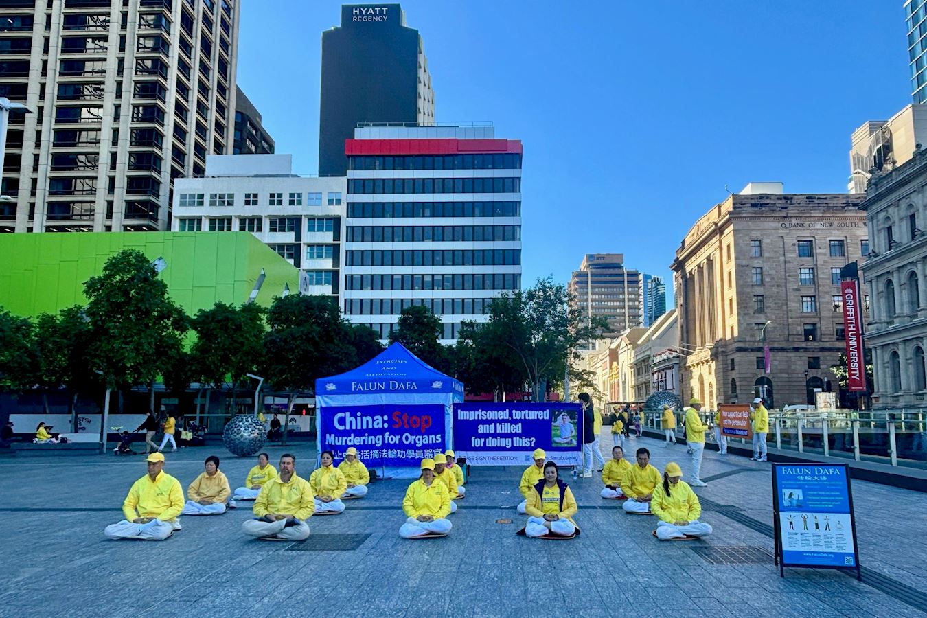 凯伦·唐纳森(Karen Donaldson)是退休的残疾护理员,她和朋友在布里斯班广场散步时,被学员平静的功法展示所吸引。走近后看到关于活摘器官和二十六年反迫害的横幅,感到触目惊心。