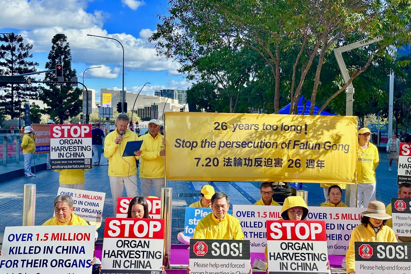 法轮大法昆士兰佛学会发言人约翰·道维(John Dowie)在发言中表示:“正是二十六 年前的今天,中共对法轮功发动了残酷和非人道的迫害,法轮功是一种基于 真、善、忍的精神修炼。这场迫害在中国各地造成了任意逮捕、酷刑、杀戮,甚至大规模的活摘器官,摧毁了数百万法轮功学员及其家人的生活。”