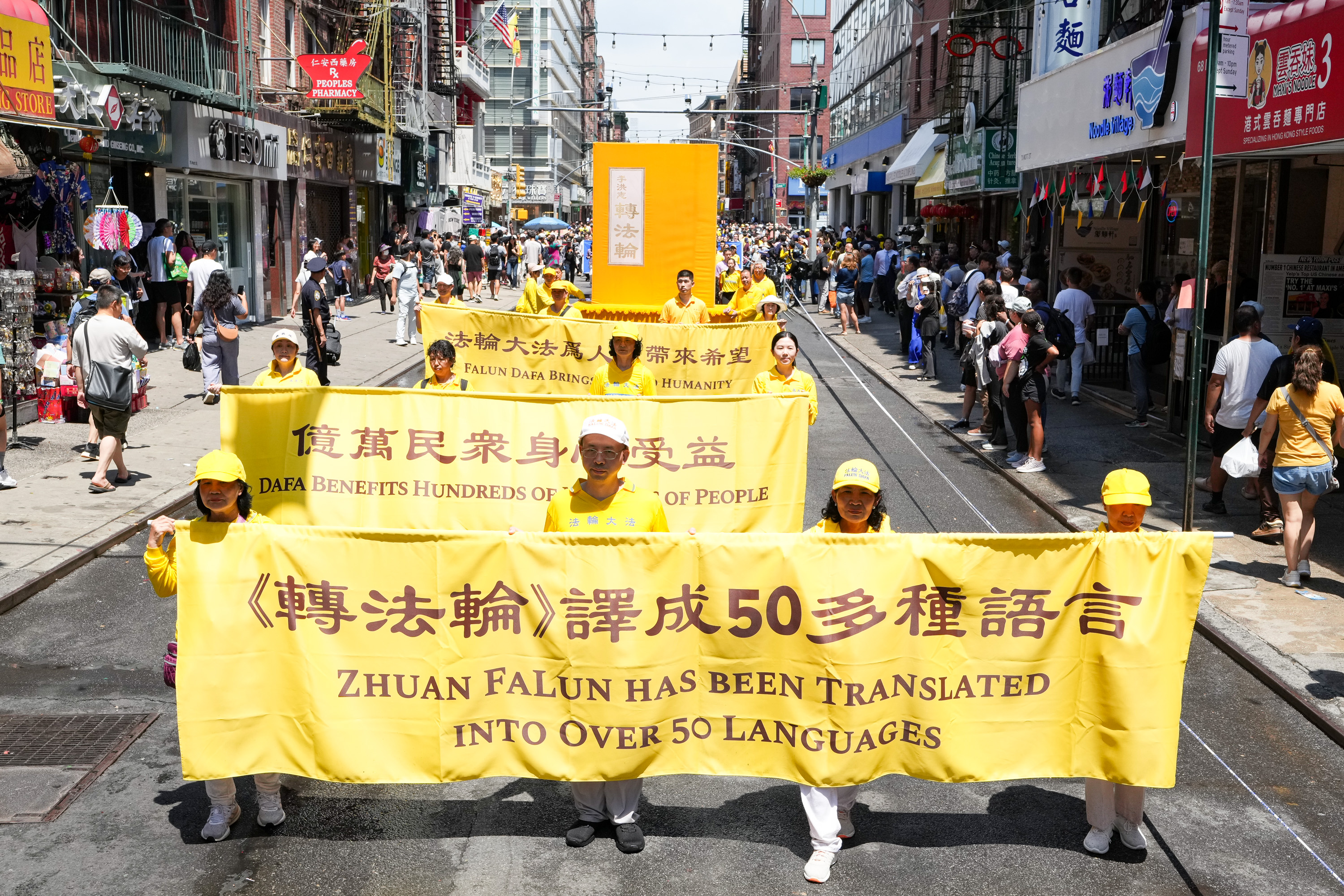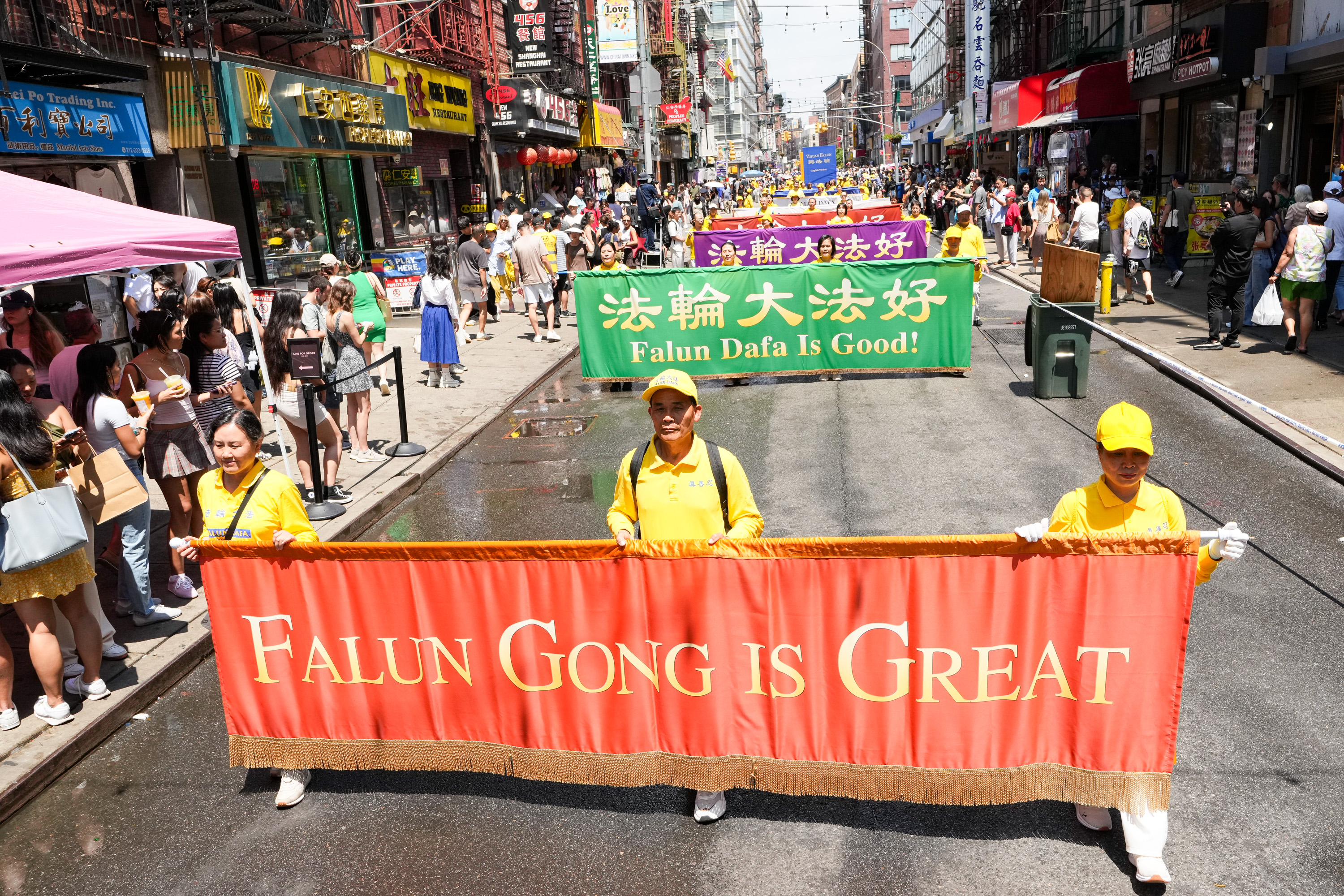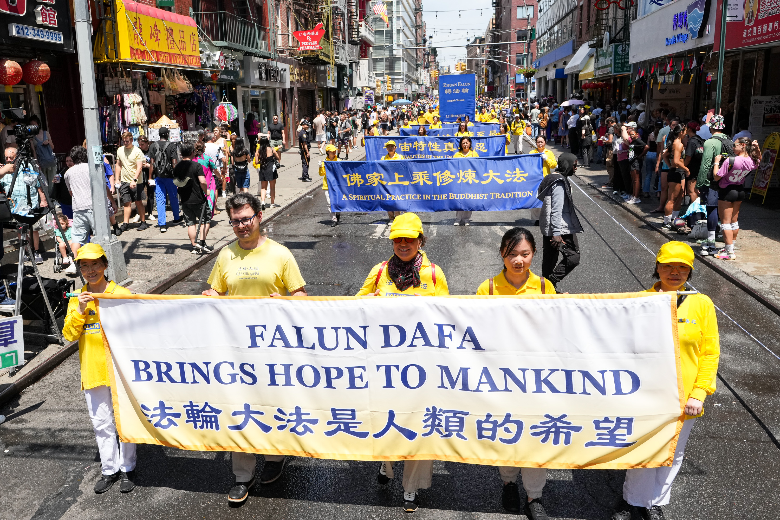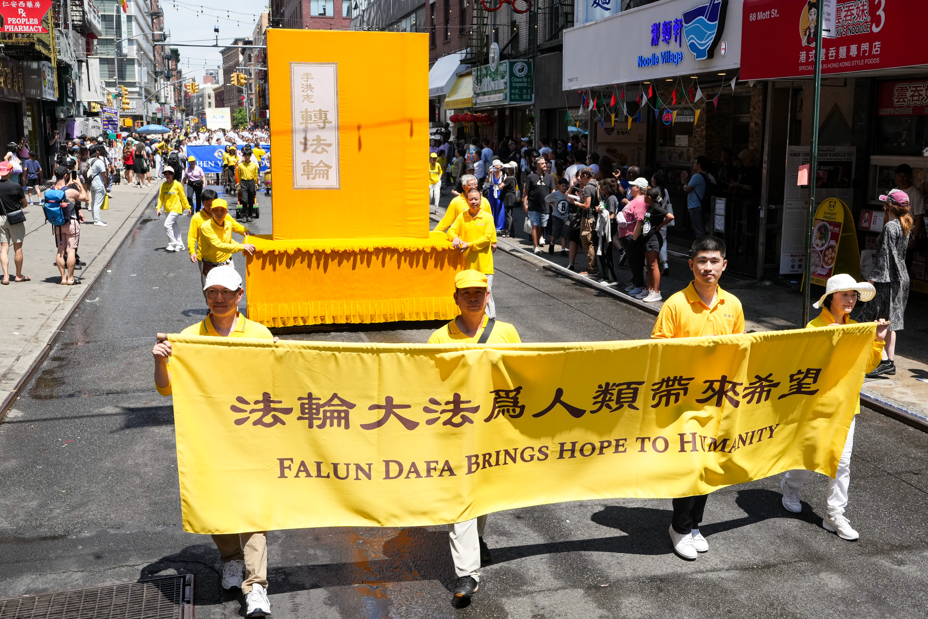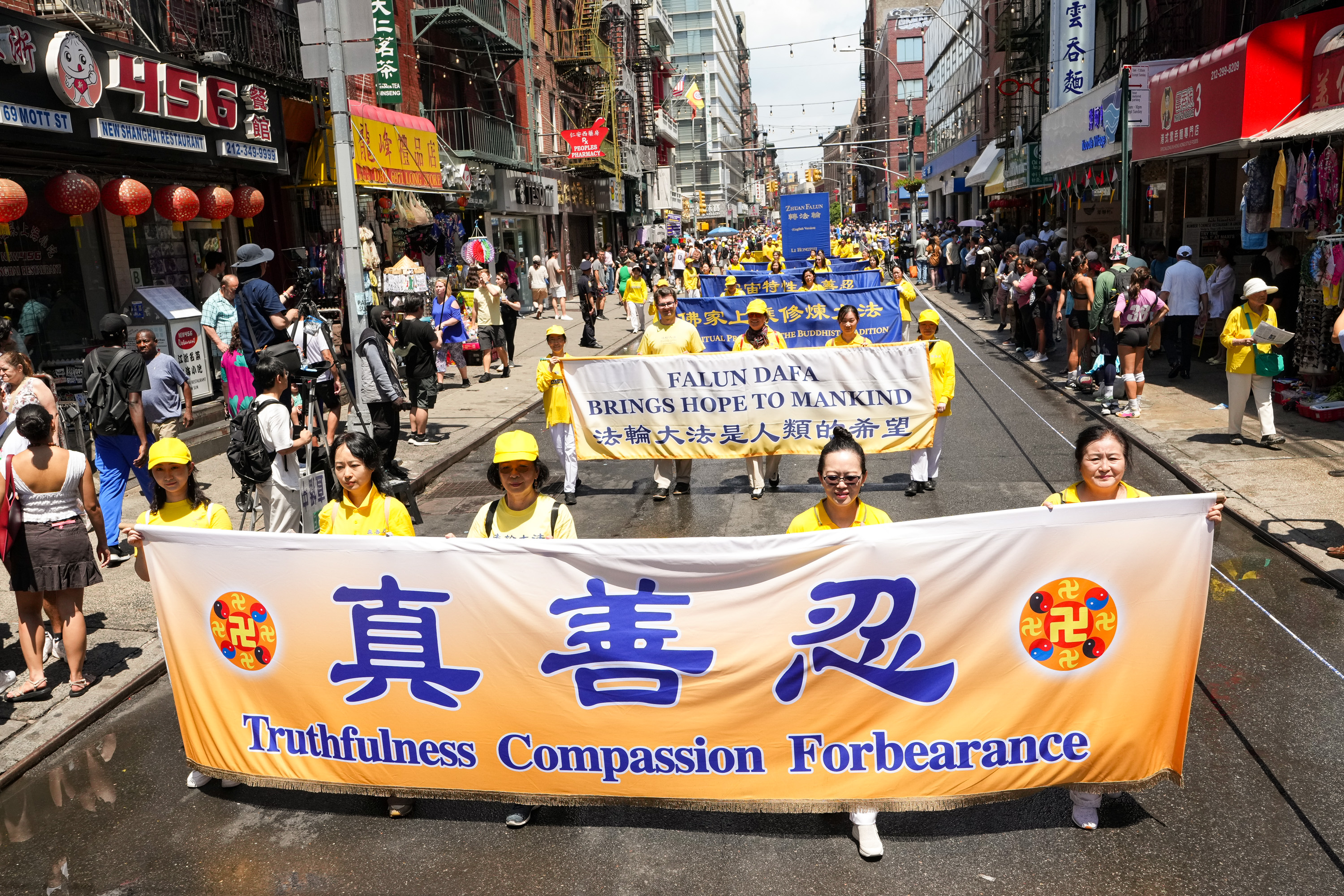 没有仇恨与鼓噪,只有真相与善良。中西男女老少法轮功学员手们中展示的一条条横幅,向世人传播善良与和平的精神力量,庄严肃穆,坚韧不拔。请看更多来自这次纽约曼哈顿的游行图片: