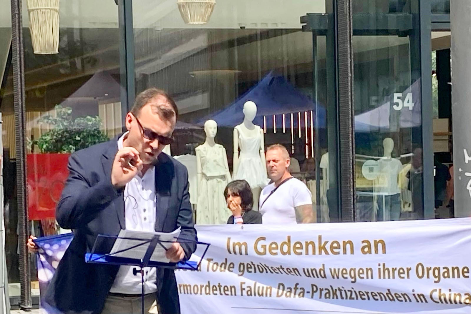 法兰克·伯纳先生(Frank Börner)是北威州议会议员,几年来多次在法轮功集会上谴责中共的迫害。活动当天,伯纳议员再次来到现场,在发言中他提到:“这些人(法轮功学员)仅仅出于健康冥想打坐,就遭受中共迫害。今天我们缅怀那些遭受酷刑、已去世者(法轮功学员),关注那些仍被关押在劳教所的人(法轮功学员)。这些冥想打坐的人(法轮功学员),对他人、对政府会有什么危险吗?中共政府的迫害毫无根据。”