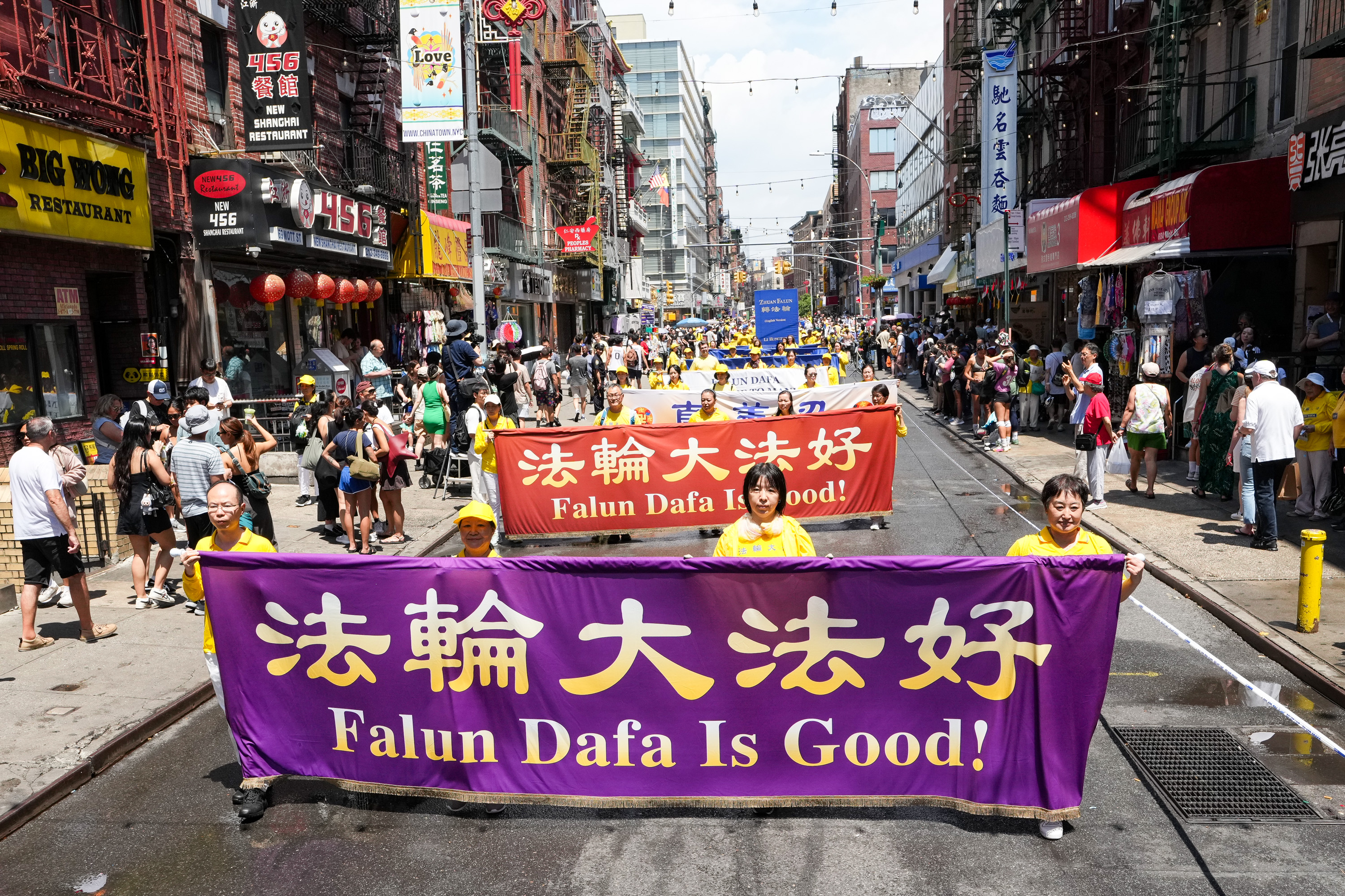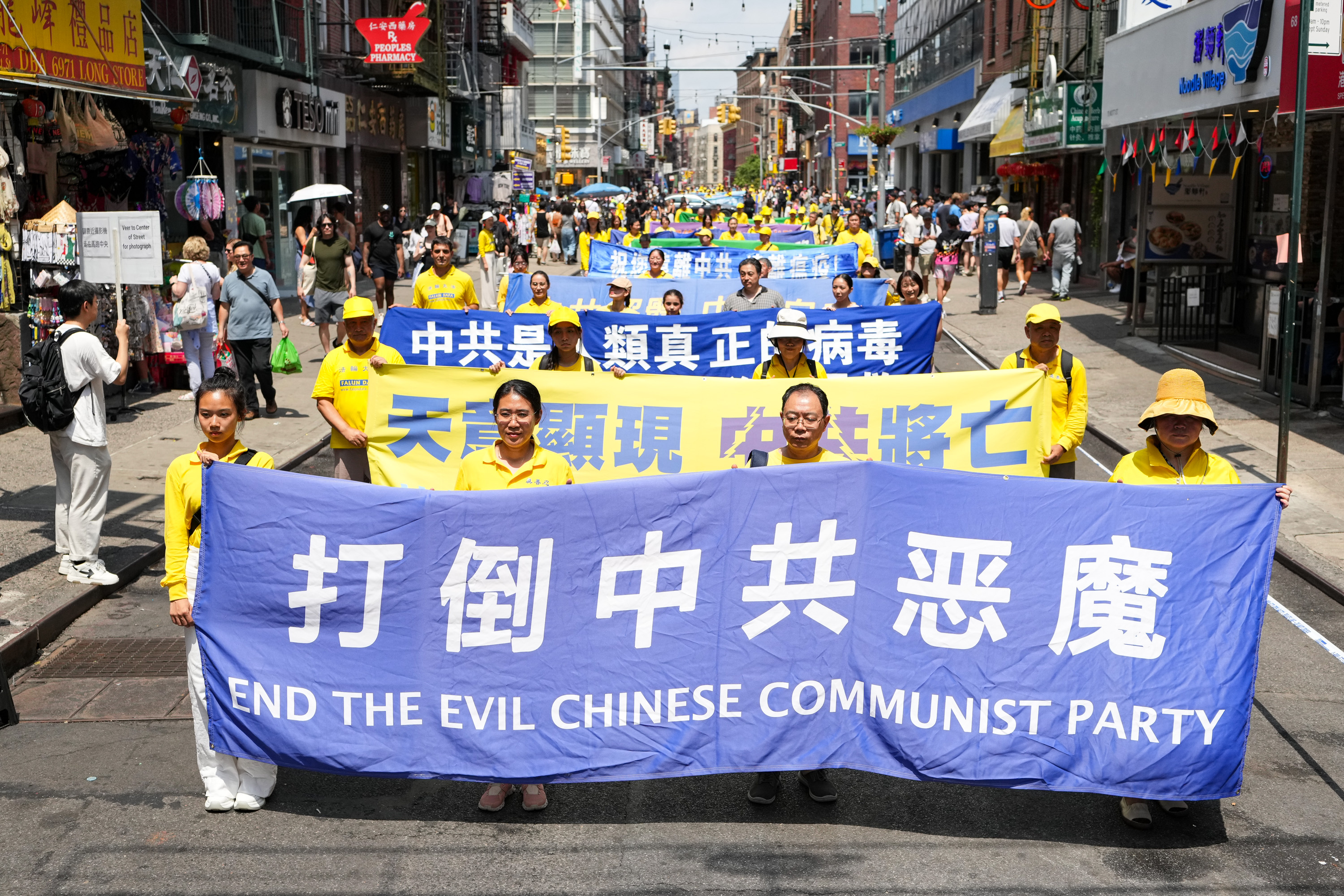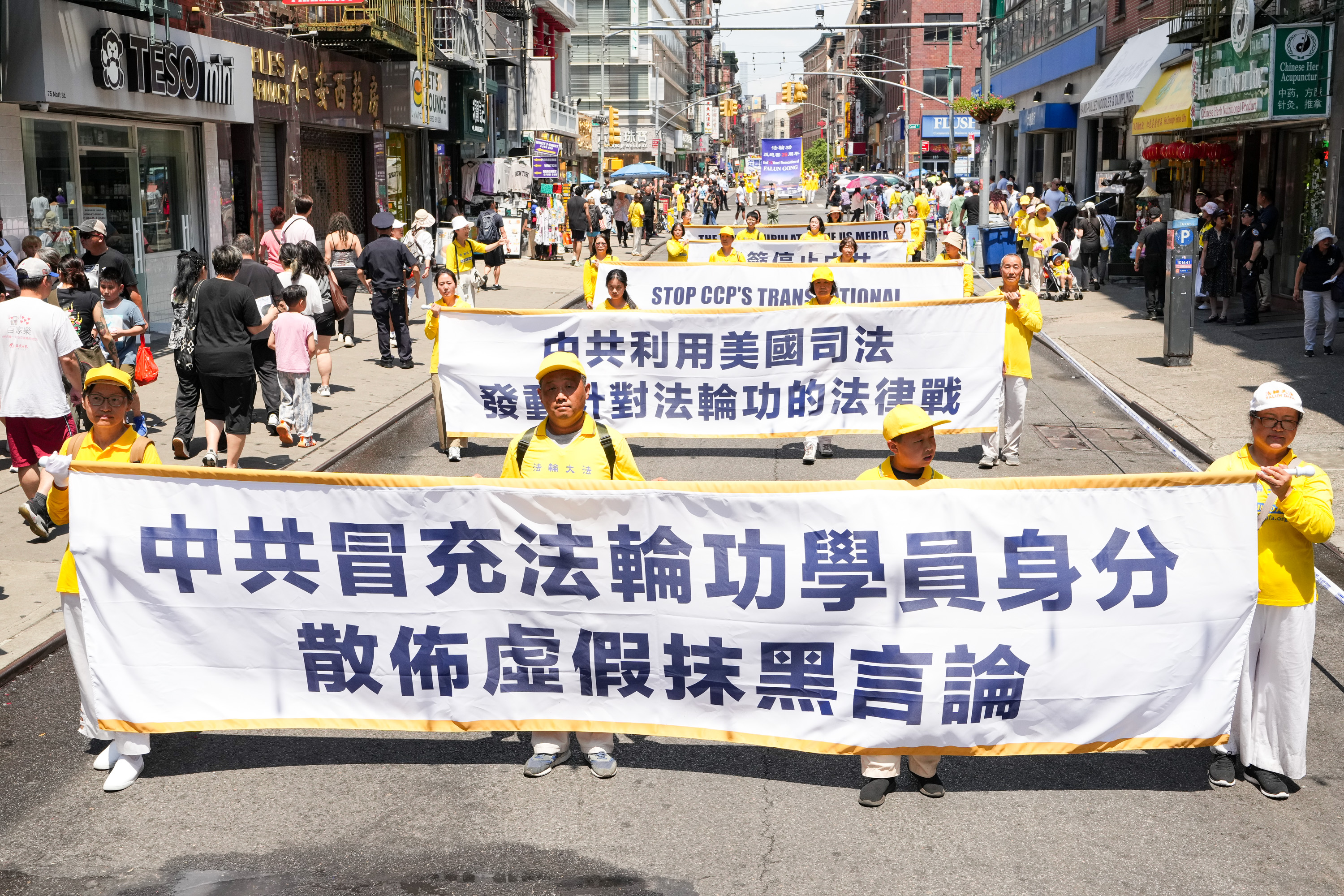 没有仇恨与鼓噪,只有真相与善良。中西男女老少法轮功学员们手中展示的一条条横幅,向世人传播善良与和平的精神力量,庄严肃穆,坚韧不拔。请看更多来自这次纽约曼哈顿的游行图片:
