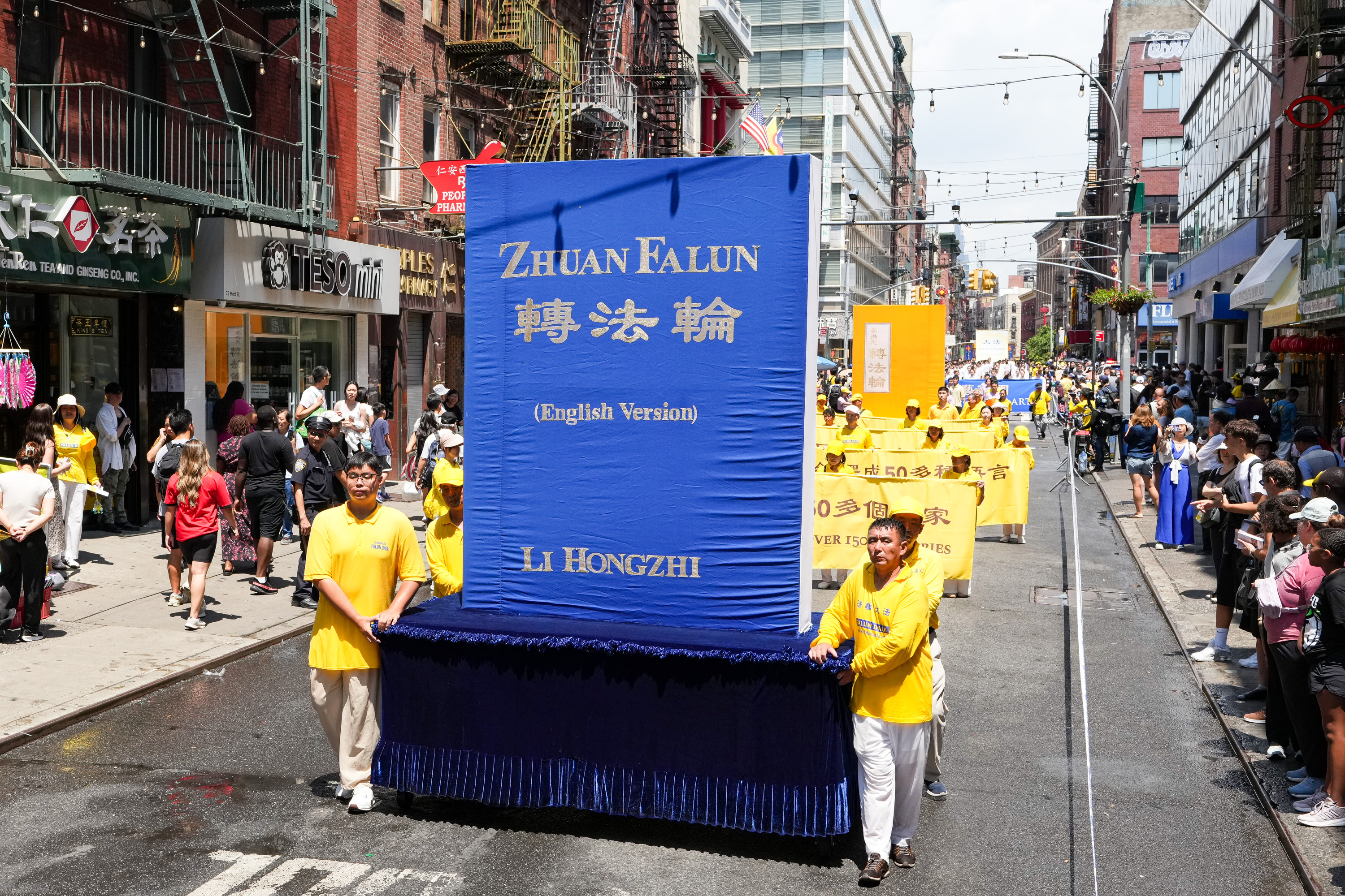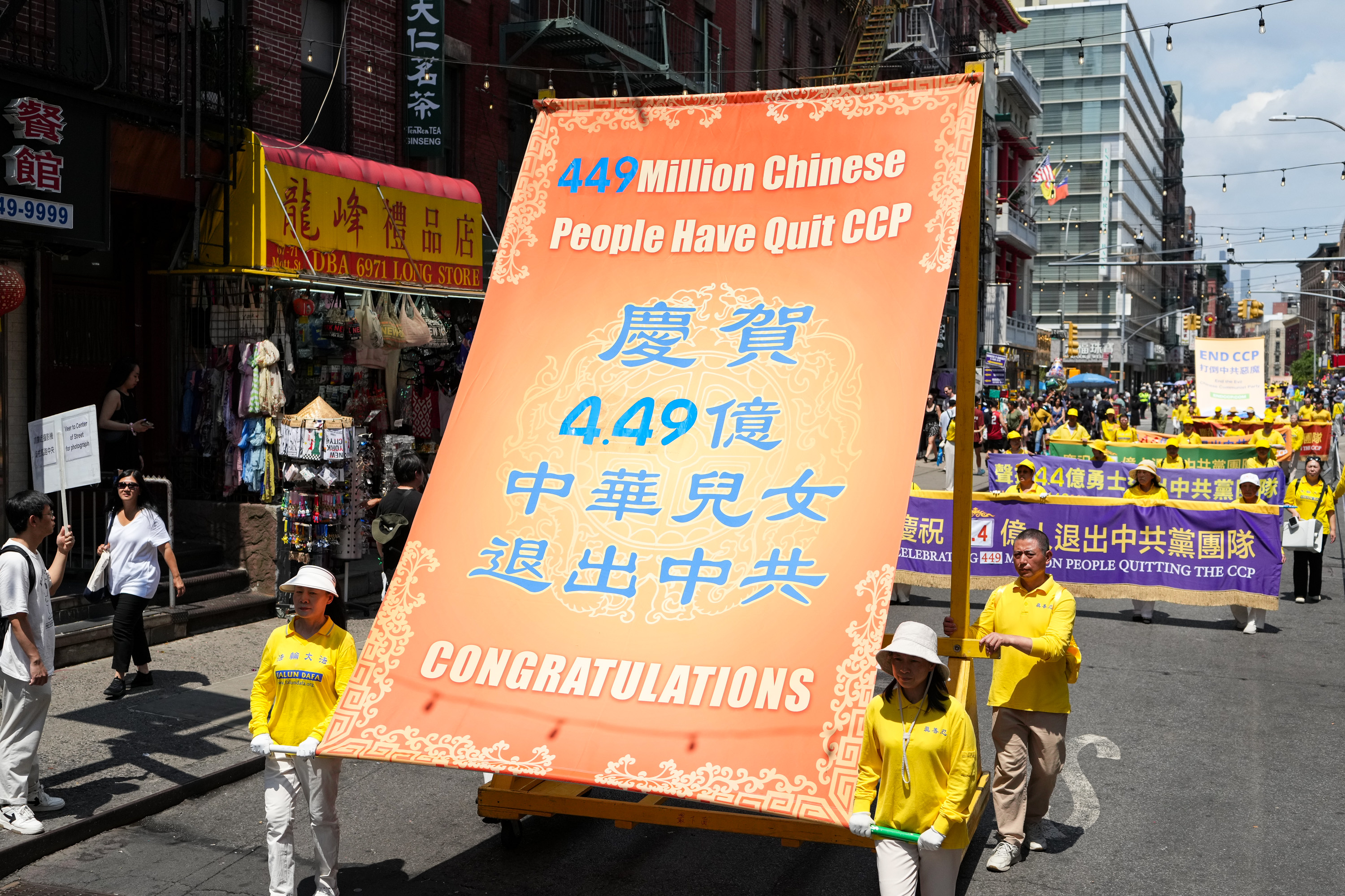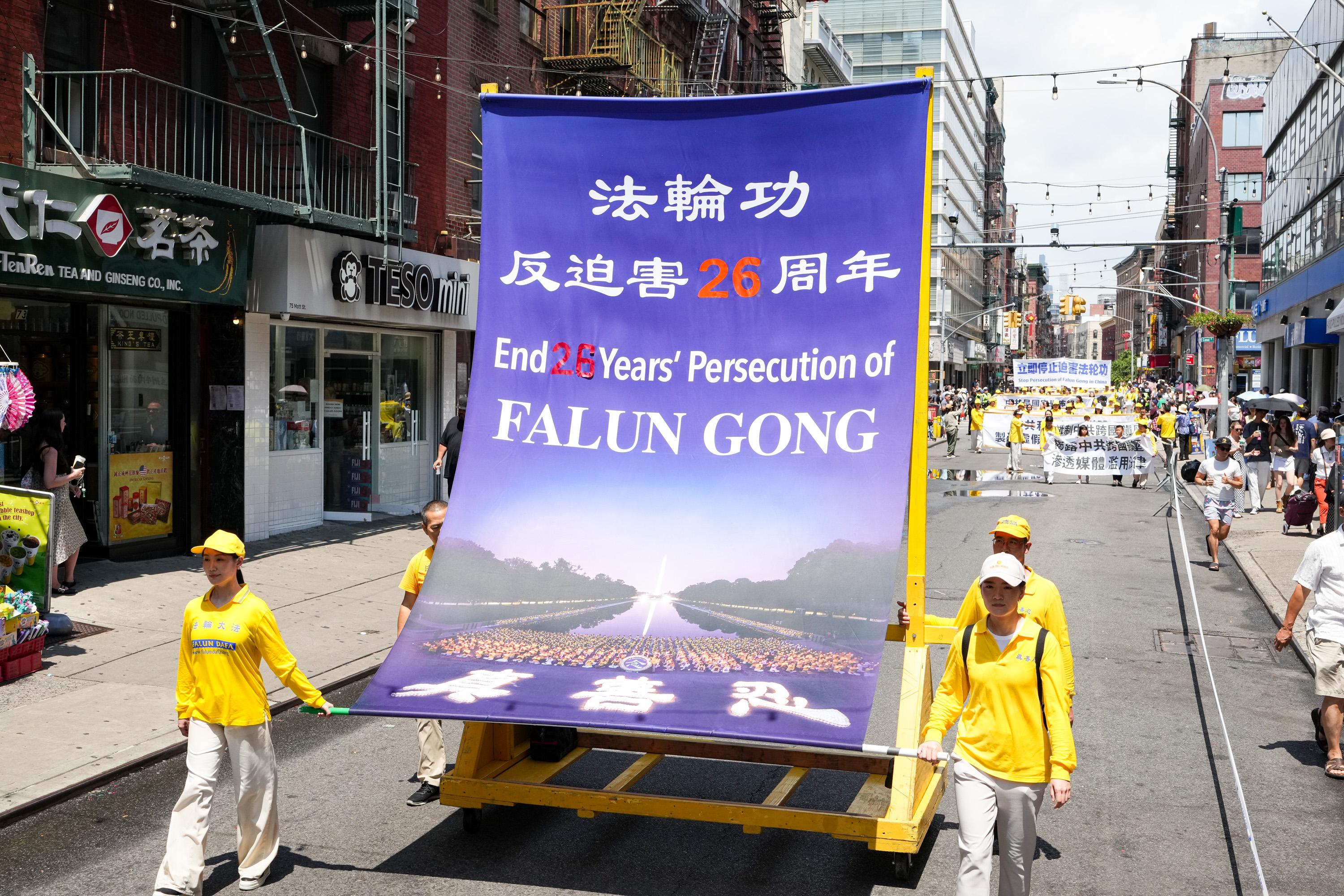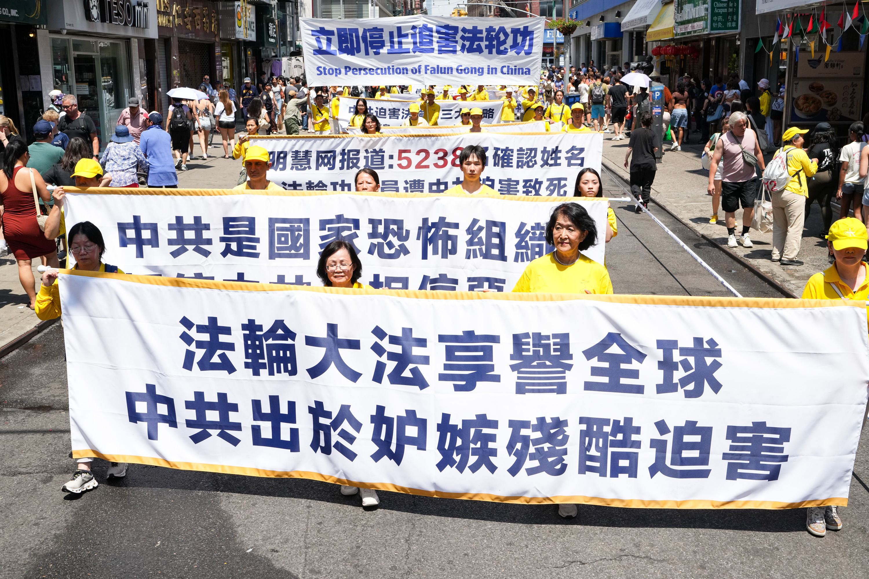 没有仇恨与鼓噪,只有真相与善良。中西男女老少法轮功学员们手中展示的一条条横幅,向世人传播善良与和平的精神力量,庄严肃穆,坚韧不拔。请看更多来自这次纽约曼哈顿的游行图片: