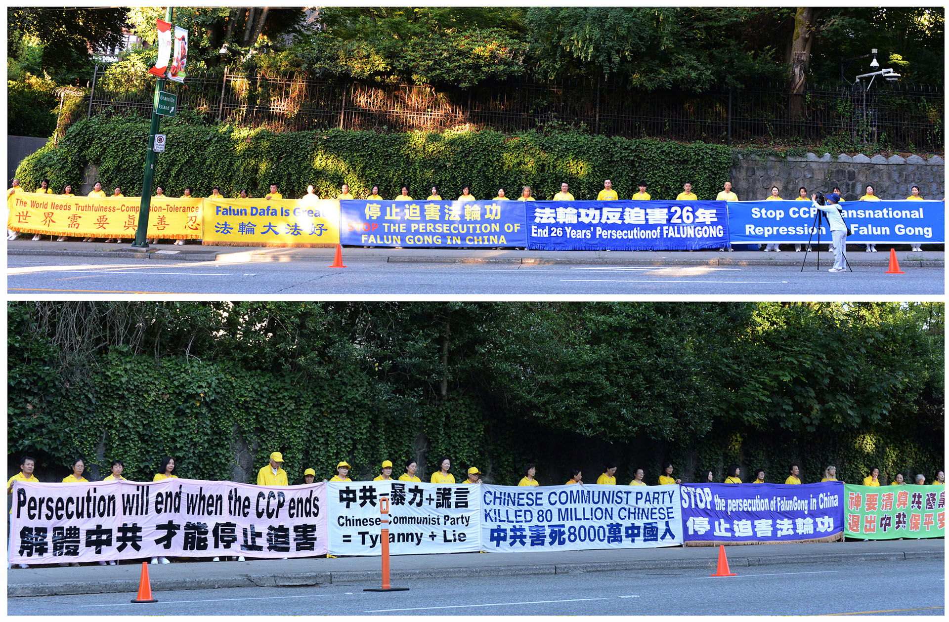 ![]() 图9~14:二零二五年七月十六日傍晚,大温哥华地区的部分法轮功学员在温哥华中领馆前,以真相长城方式揭露中共恶行。 |