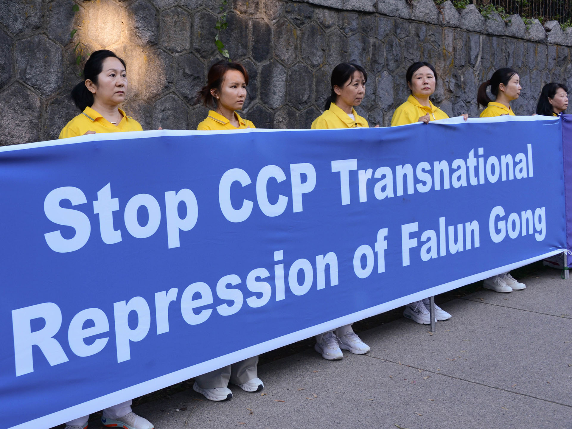 当天,法轮功学员组成的游行队伍,由打着“法轮大法”横幅的天国乐团开道,后面则是横幅方阵,他们手持“反对中共跨国镇压”、“中共害死8000万中国人”、“解体中共、制止迫害”、“法轮大法好”等大型中英文横幅,表达他们的诉求。