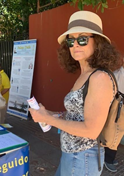 心理医师贝伦•罗德里格斯(Belen Rodríguez)女士是居住在大使馆附近的居民,她告诉法轮功学员,这已经不是她第一次看到反迫害和平抗议了。“我在这里多次看到你们,难以理解中共对信仰真善忍的好人迫害这么多年。”罗德里格斯还说:“活摘器官这不是一般的罪恶,这不是正常人能做得出来的,必须要起诉这些恶人!”她的语气中充满了愤怒。