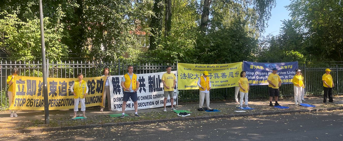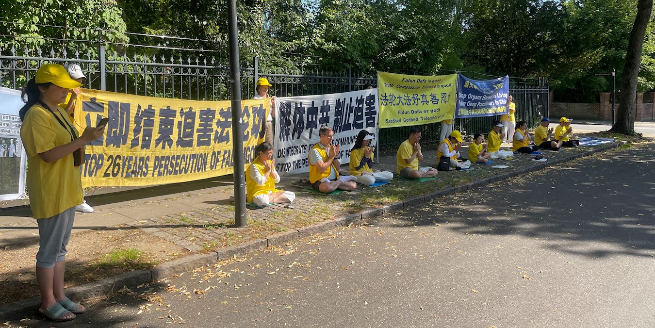 自二零零三年起,丹麦法轮功学员开始每天在中使馆前,抗议中共迫害法轮功。至今持续了二十多年。每到“七·二零”这个黑暗的日子,更多的学员来到这里,表达自己的诉求:立即停止对信仰真善忍群体的迫害。