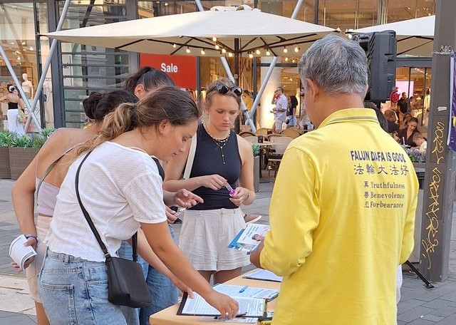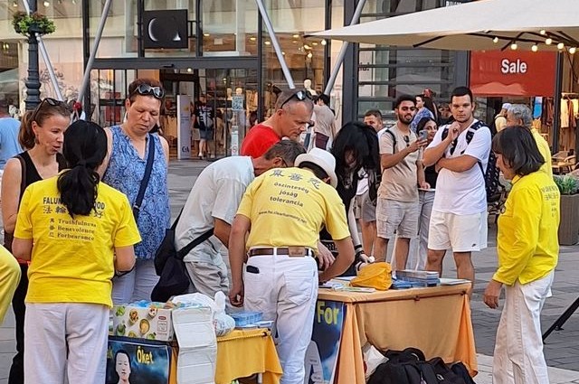 学员还向他们介绍了很多关于什么是法轮功的信息,佐尔坦说:“学员们身上有一种非常善良的气场,令人感到愉悦。我希望他们继续努力,做好这件事。”