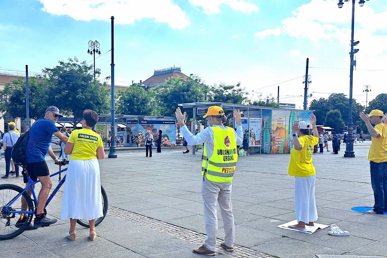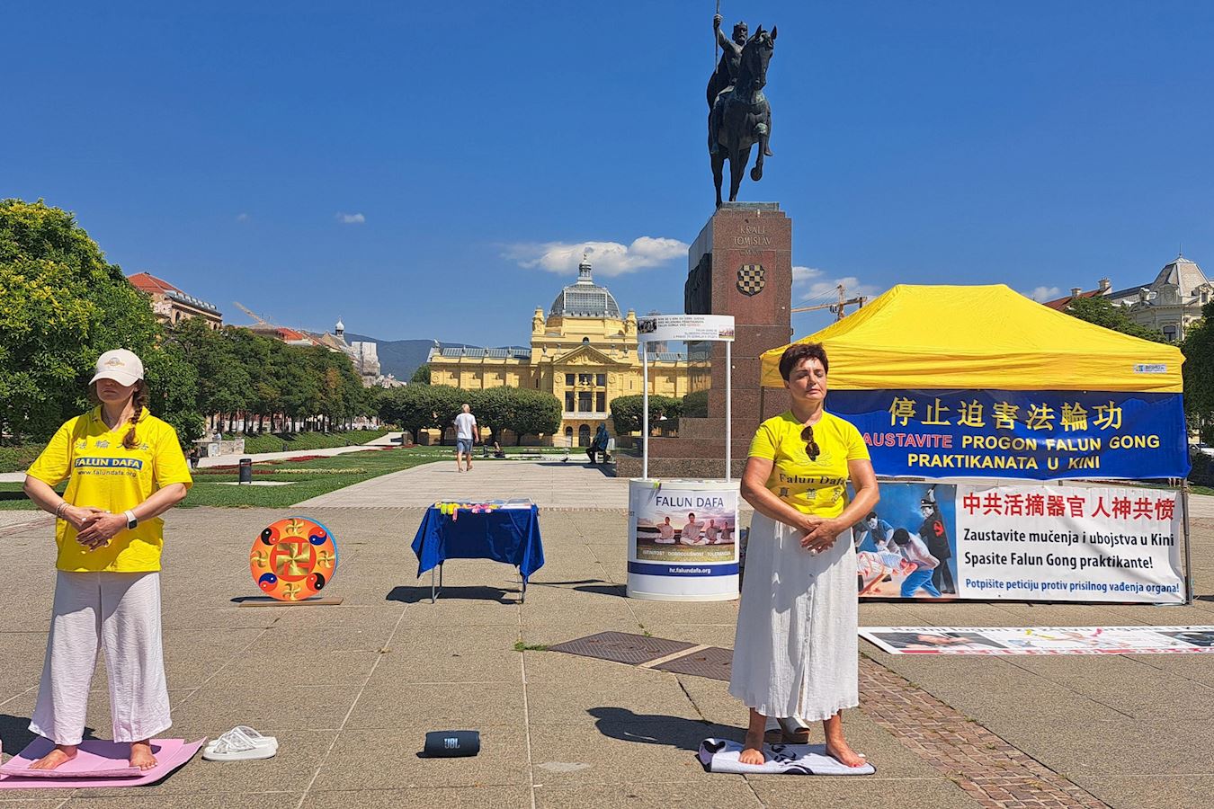 ![]() 图1:二零二五年七月十九日,克罗地亚法轮功学员在首都萨格勒布(Zagreb)举办反迫害二十六年活动,法轮功学员向过往的市民展示功法。 |
