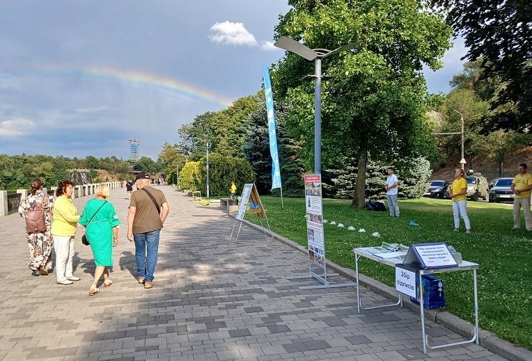 ![]() 图1:二零二五年七月二十日,法轮功学员在乌克兰第聂伯市河堤举办活动 |