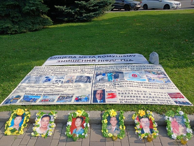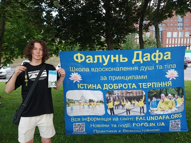 现场通过喇叭用乌克兰语和英语播放有关迫害的信息,同时展出了介绍法轮功以及中共迫害历史的展板和海报,供路人阅读。人们可以了解到法轮功是什么、这场迫害的起因与经过,以及中国监狱中对学员使用的多种酷刑手段。