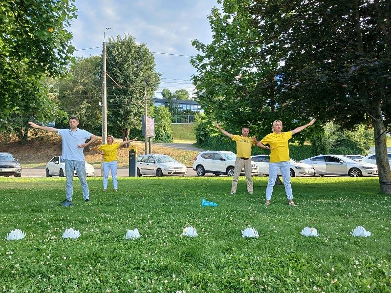 当地居民斯维特兰娜(Svetlana)也被活动中法轮功的功法演示所吸引。她向学员询问了什么年龄可以开始炼功,以及炼功时应该想些什么。在阅读介绍迫害和酷刑的展板后,她对无辜的人为何会遭到镇压感到困惑。学员向她讲述了这场迫害的残酷,以及中共无神论政权的邪恶本质。