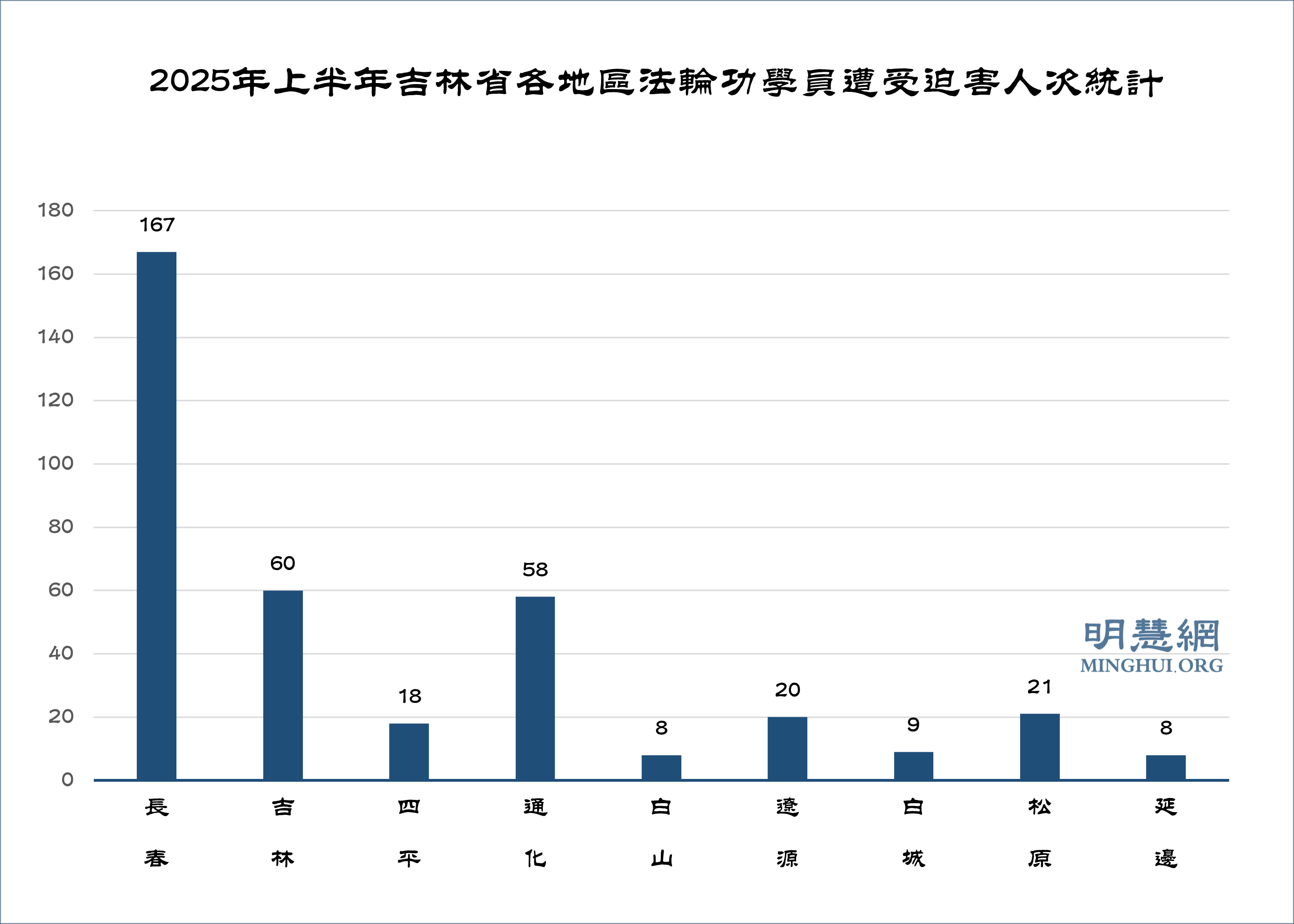 ![]() 图2:2025年上半年吉林省各地区法轮功学员遭受迫害人次统计 |