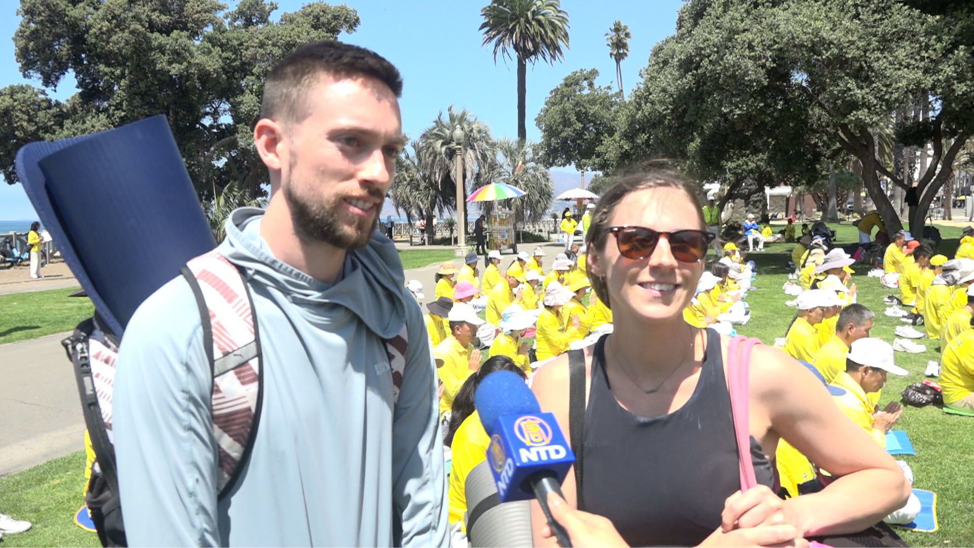 住在附近的居民布伦丹·克拉克(Brendan Clarke)介绍,他们事先上网了解了法轮功后,来到现场学炼功法,“炼完后感觉很棒,让人平静,我很喜欢,而且这里的每个人都很友善。”一起学炼的杰西·波特(Jesse Porter)也说:“感觉非常轻松祥和。”两人都表示,这样美好的修炼方法应该广传。所以他们很支持美国政府发出正义声音,制止中共对法轮功的迫害。