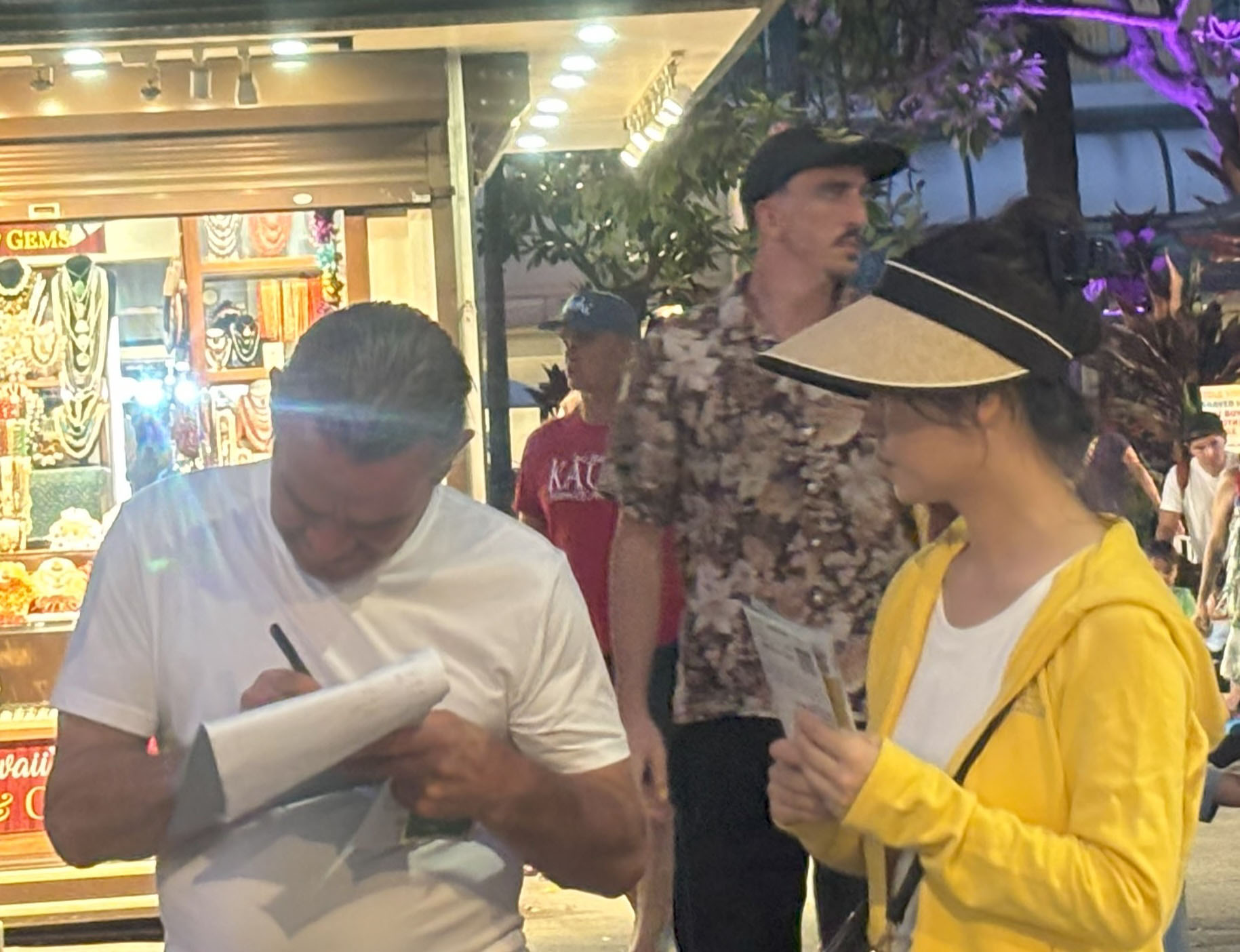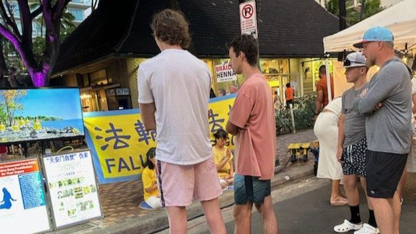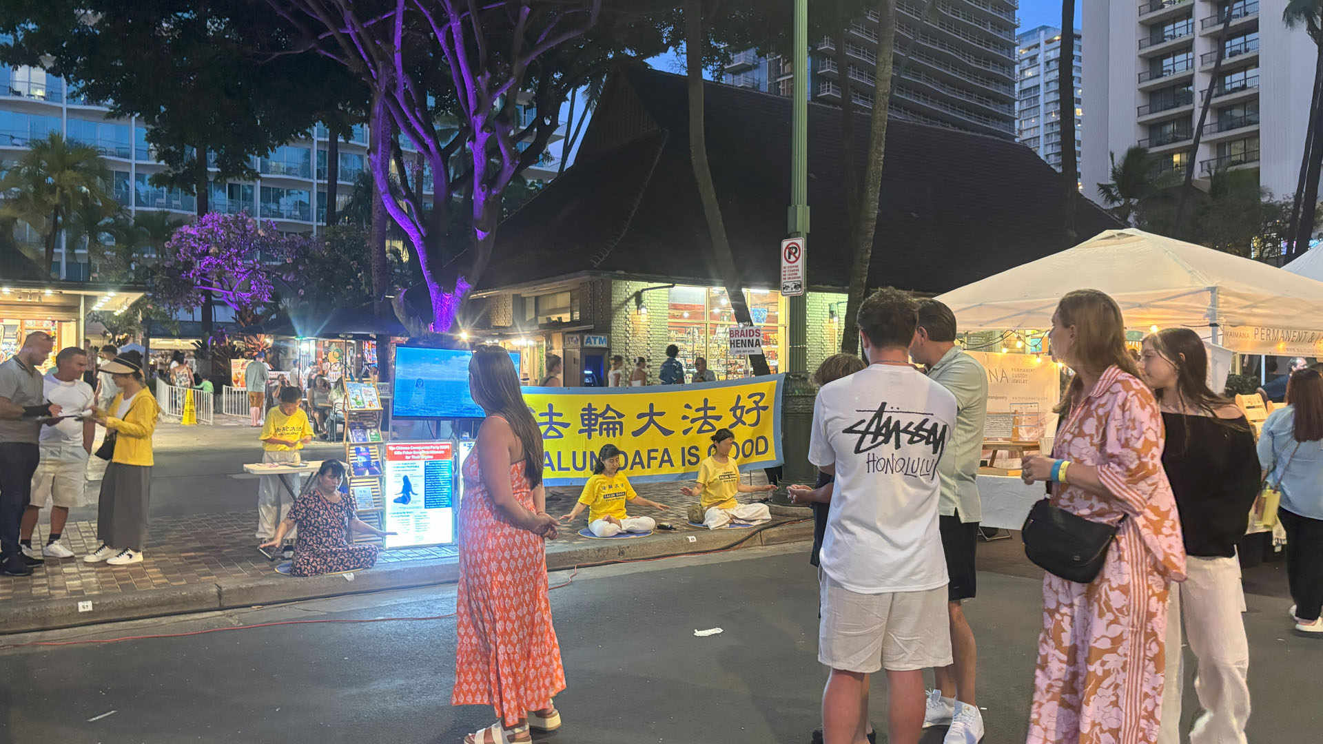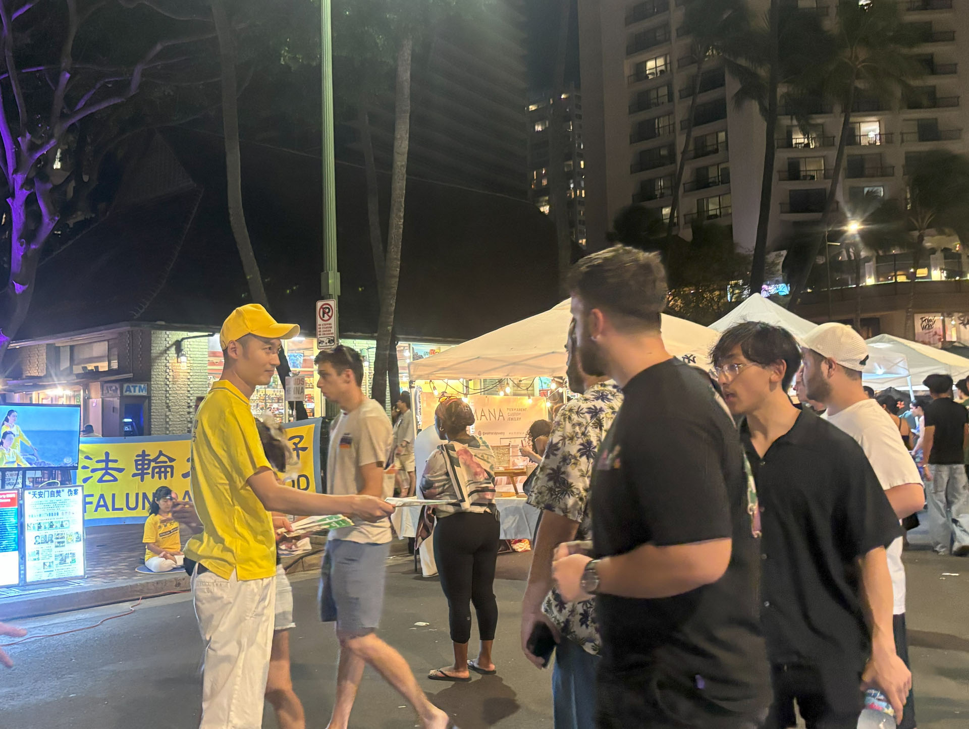 ![]() 图1~5:二零二五年七月十九日晚,夏威夷的首府檀香山(Honolulu)学员在威基基(Waikiki)景区,向世人传播法轮功真相。 |