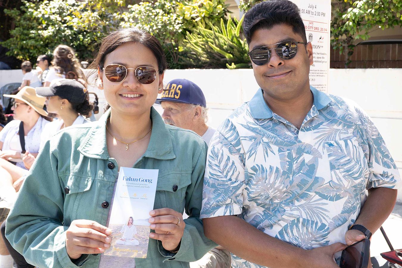 印度裔女士说,“这支队伍让我感到放松,非常好。打坐炼功非常好,你们在社区传播的很广,法轮功让我们的生活变得更好,我支持法轮大法。”