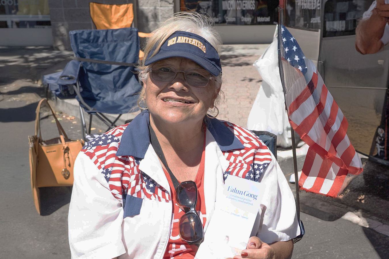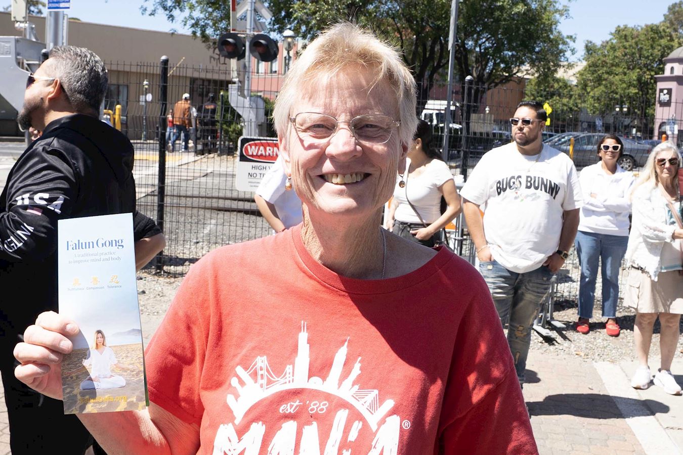 圣马刁县服务联盟的员工特里琳·安德森(Terilyn Anderson)说,“法轮功学员的队伍非常了不起,他们整齐的步伐,舒展的炼功动作,真、善、忍原则,他们是我们的楷模。”