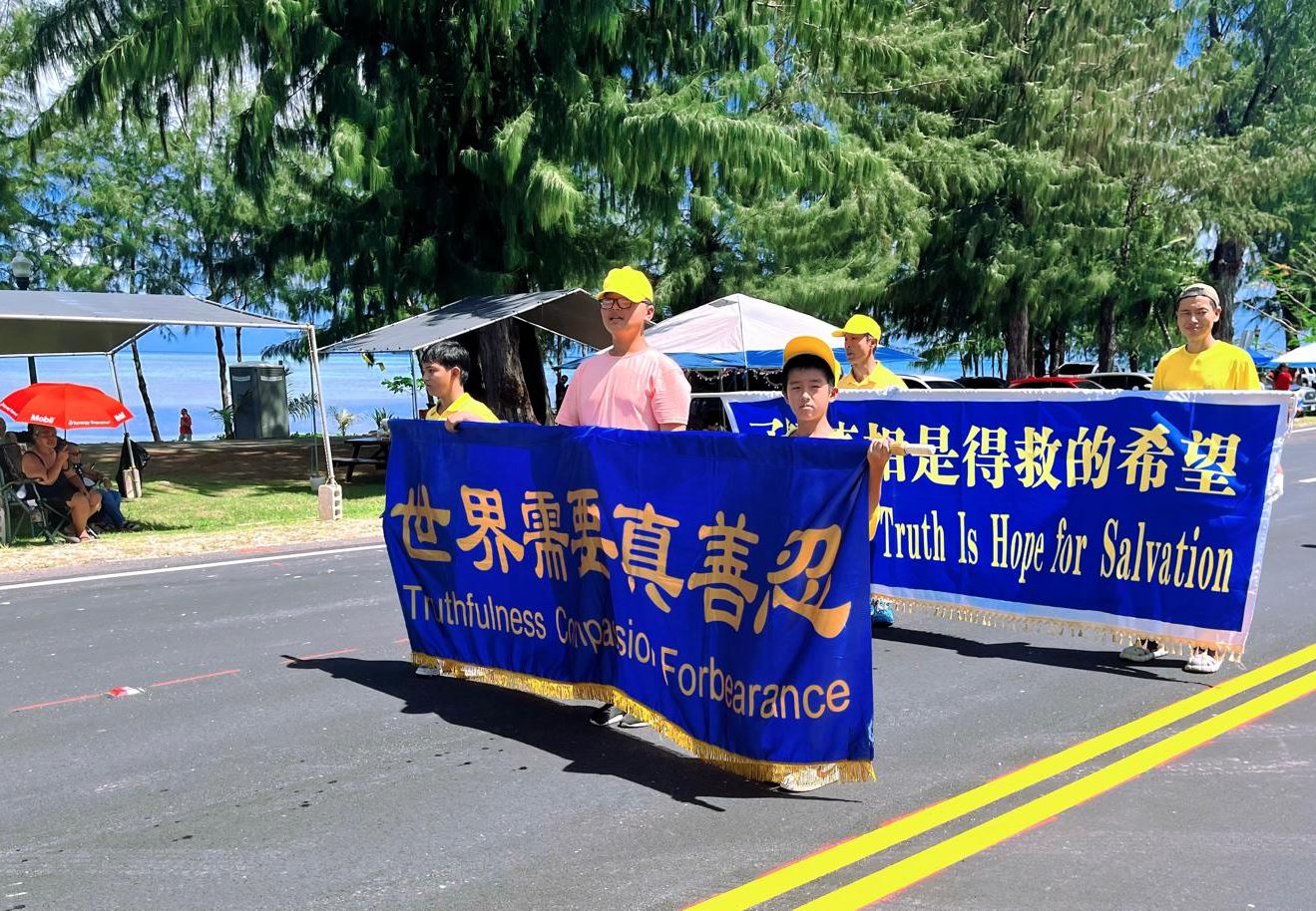 '图1~6:二零二五年七月四日,塞班岛法轮功学员参加塞班庆祝独立日游行活动。'