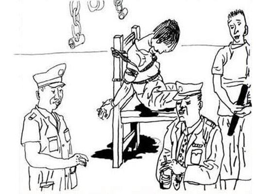 ![]() 中共酷刑示意图:毒打 | ![]() 中共酷刑示意图:罚站 |