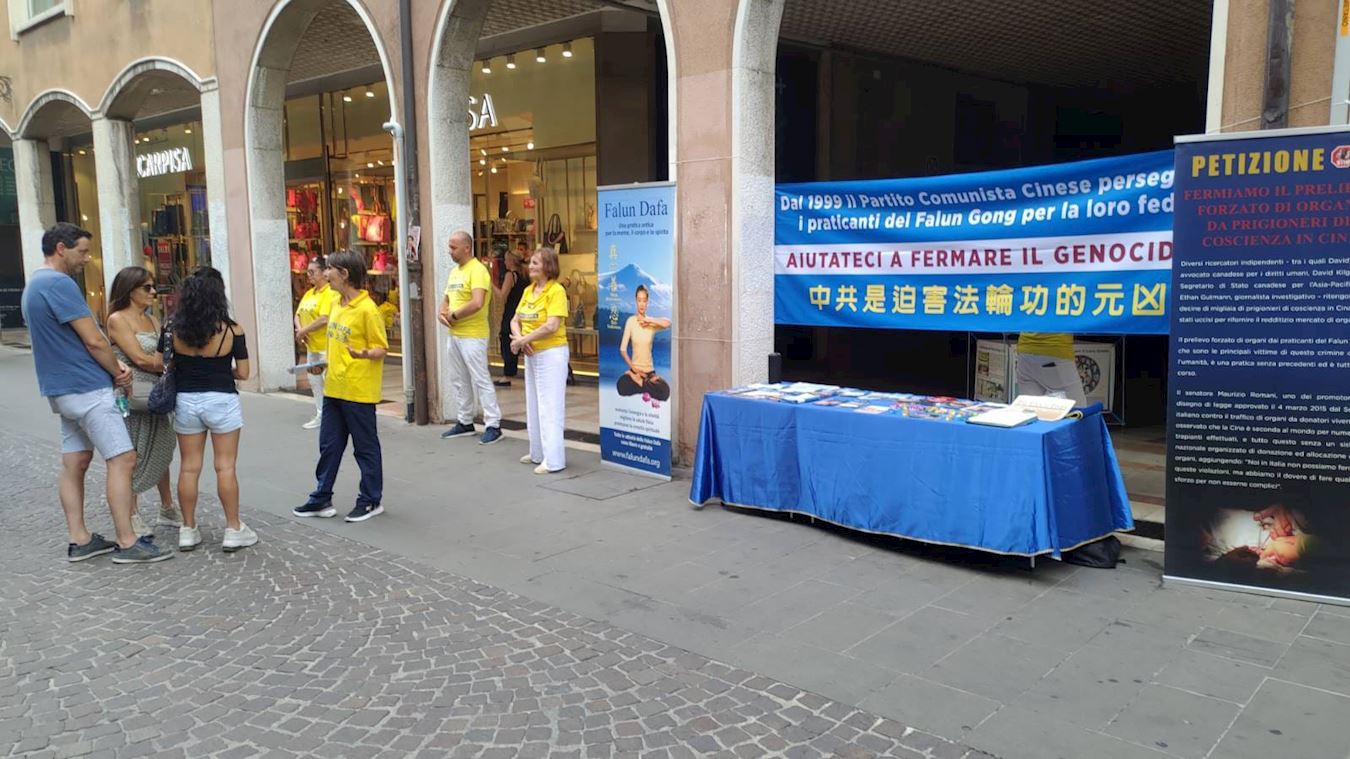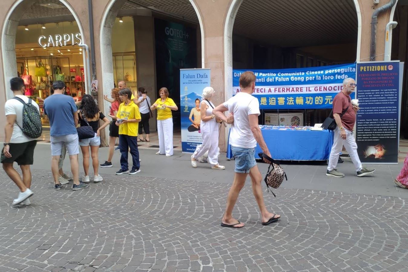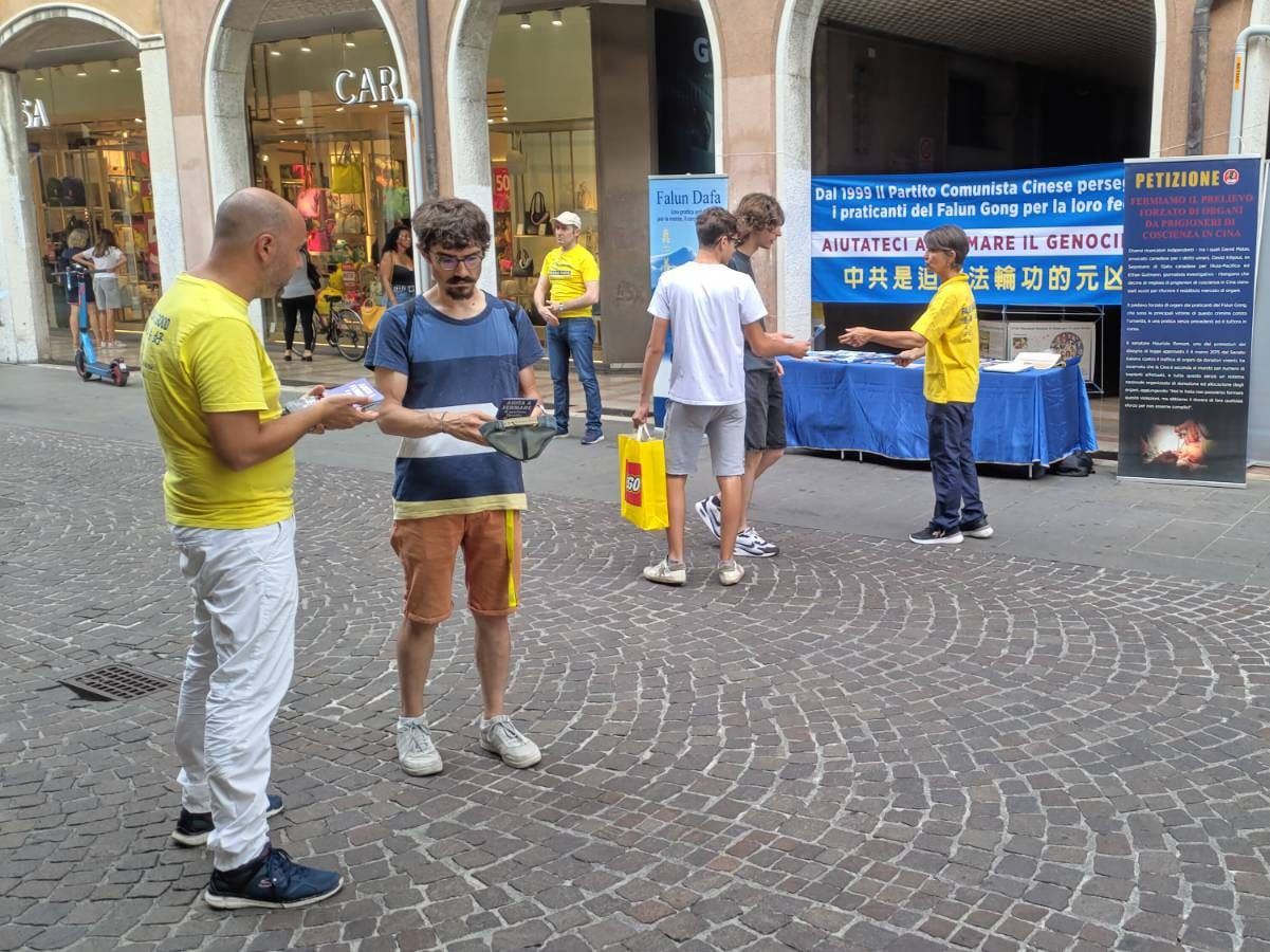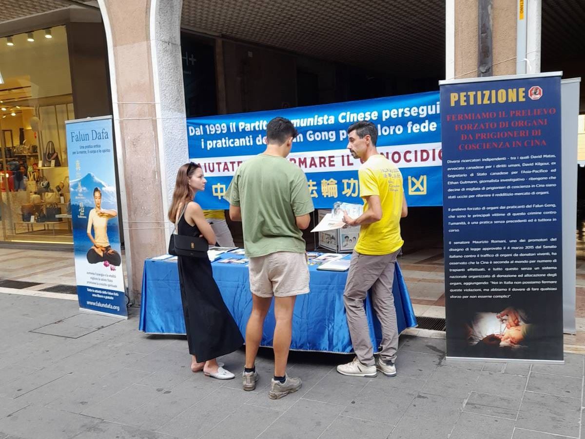 七月十九日及二十六日两个周末,时值法轮功学员和平反迫害二十六年之际,来自意大利东北部地区的法轮功学员分别在帕多瓦Padova和特雷维索Treviso市中心,举办反迫害活动,向公众揭示这场至今仍在持续的对法轮功学员实施的冷酷“群体灭绝”行径。
