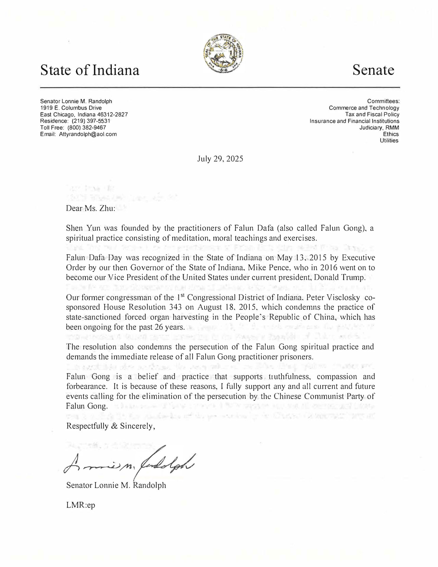 ![]() 图1:二零二五年七月二十九日,美国印第安纳州参议员朗尼·M·兰道夫 |