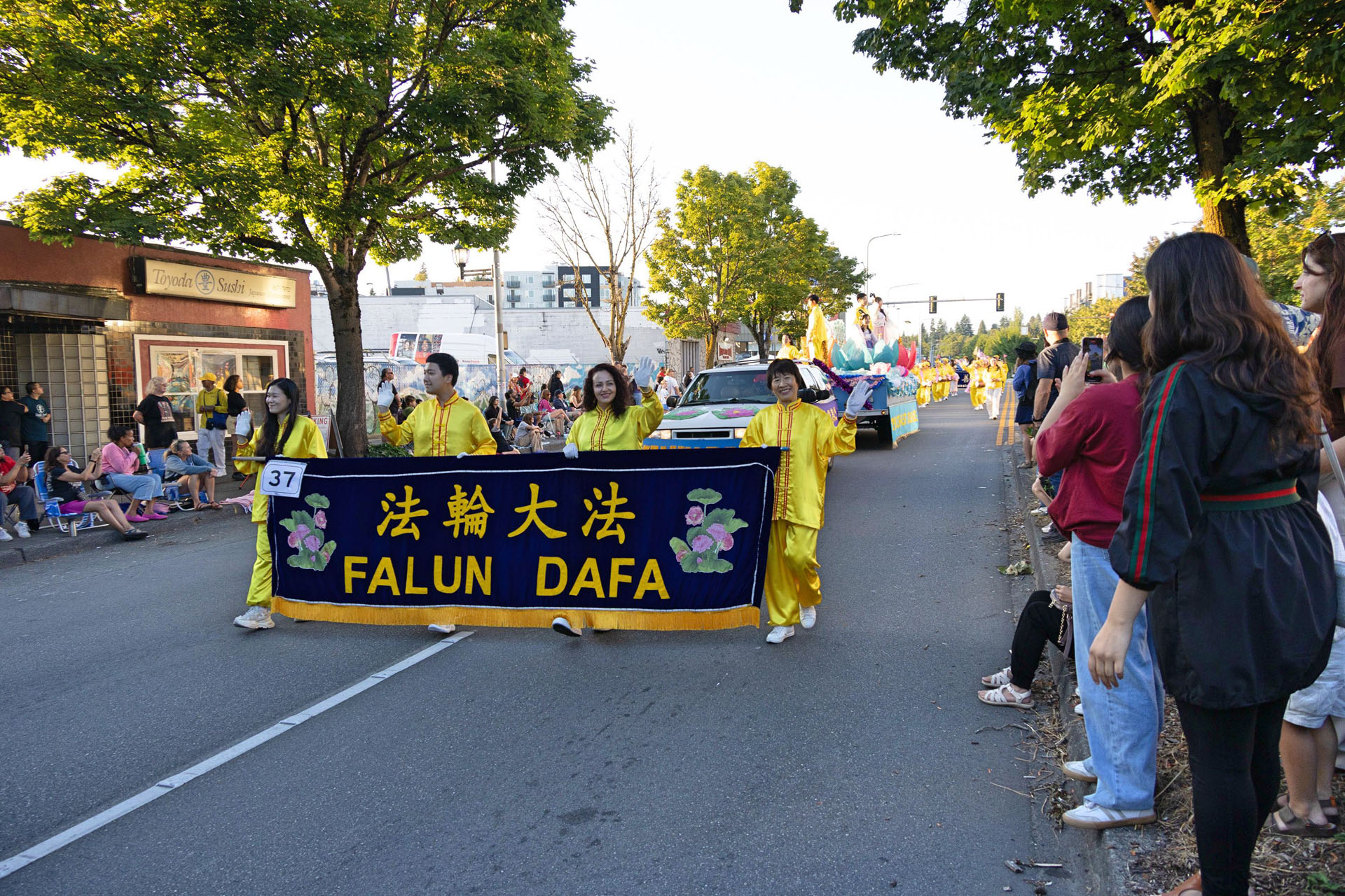 ![]() 图1~5:二零二五年八月二日,法轮功学员参加了西雅图的湖城的夏日游行,向这里的人们传递法轮大法的美好。 |