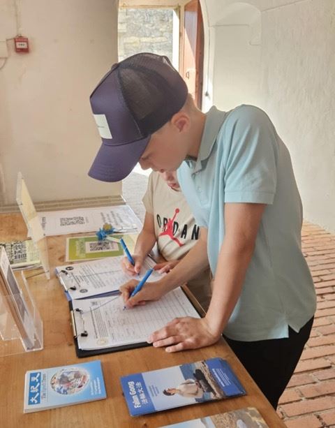 许多人表达了对法轮功学员的全力支持,他们在留言簿中说:“尽管人类有残酷一面的存在,但也有光明,请保持希望”;