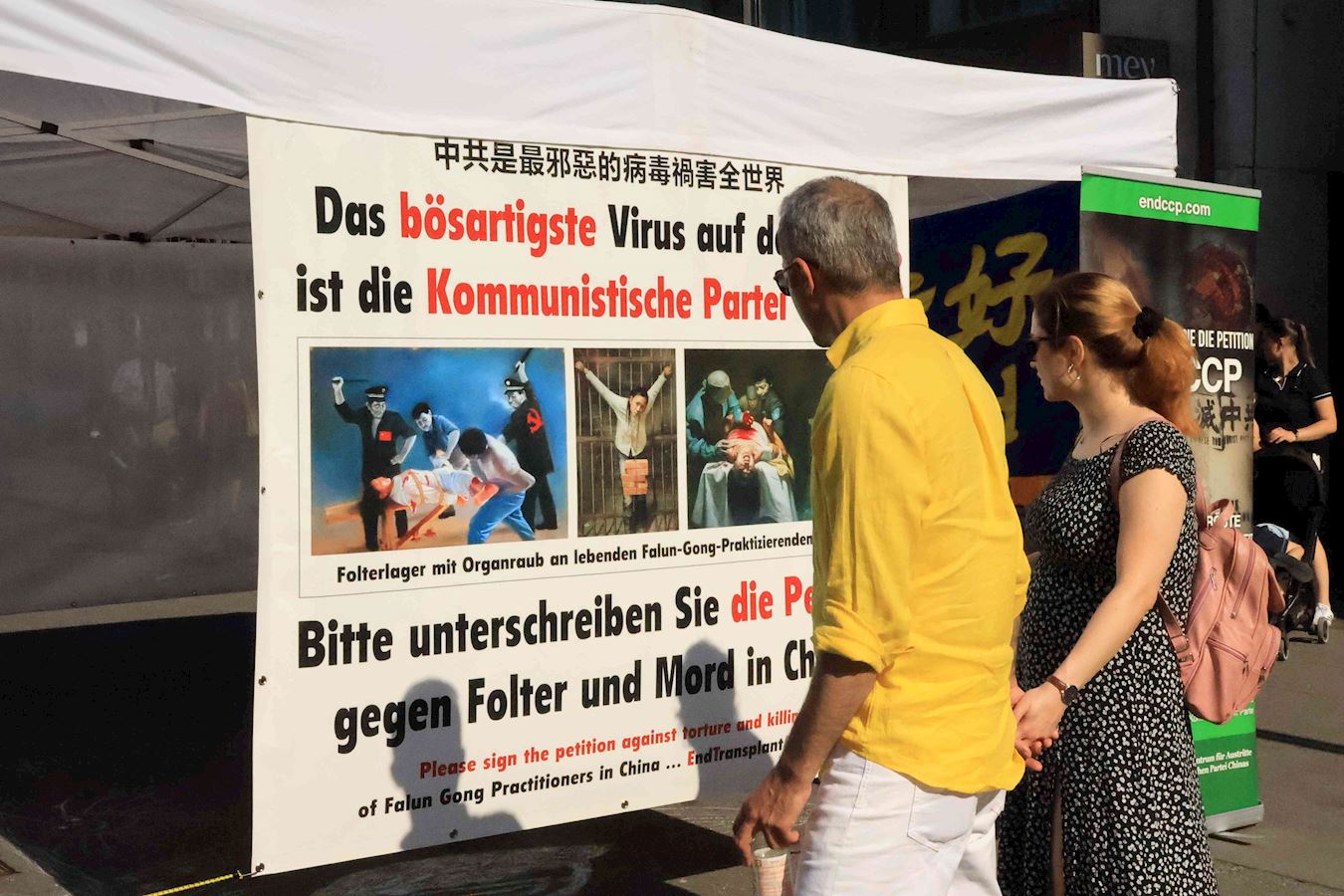 “我感到特别可怕的是,当我想到有人可以任意摘取我的器官,而我会因此失去生命。我不知道自己器官的具体去向。”拥有自己诊所的学习障碍理疗师萨宾·申菲尔德(Sabine Schönfeld)感同身受,“如此蔑视人性的行径让我感到非常愤怒,我真的非常气愤!没有人有这样的权力如此对待他人,也没有任何理由这么做。一个政权有如此行径,在我看来这个政权邪恶至极。重要的是制止中共迫害民众。”
