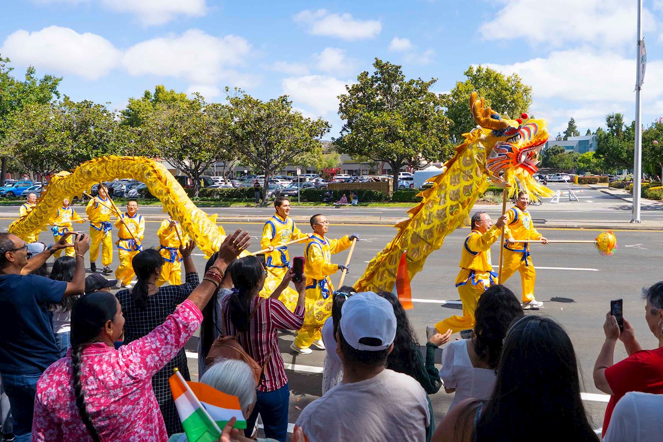 观看游行的达尔门德兰(Dharmendran)兴奋地说,“我们刚才还在这里为他们加油呢。我们在之前的活动中也见过这支队伍。我们对法轮大法比较熟悉,我们非常喜欢看他们的表演。他们的表现非常出色,而且充满活力。”