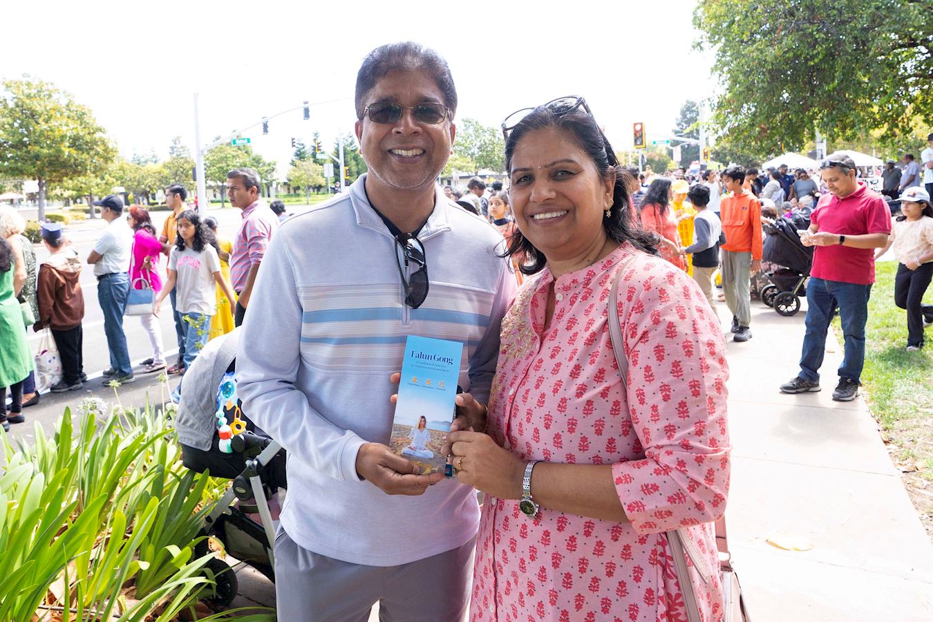 印度裔夫妇为法轮功队伍加油