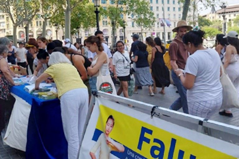 卡达卢西亚广场位于巴塞罗那市中心,来自世界各地的游客众多,经过法轮功信息展位的路人游客看到真相展板时许多人会前来询问在中国发生了什么。当了解到法轮功学员在中国遭受中共残酷的迫害,甚至被强行活摘器官后,纷纷谴责中共独裁暴政,并签名支持法轮功反迫害。